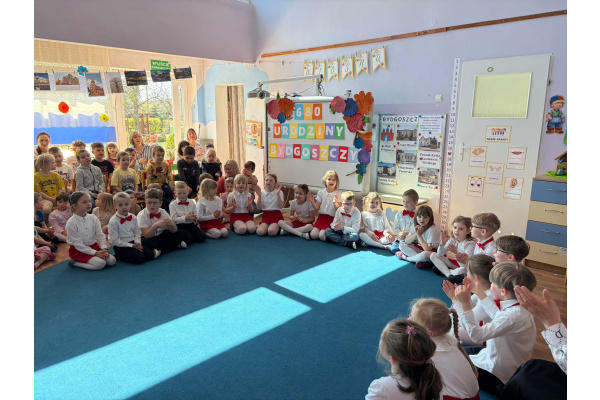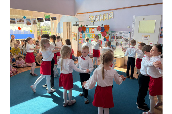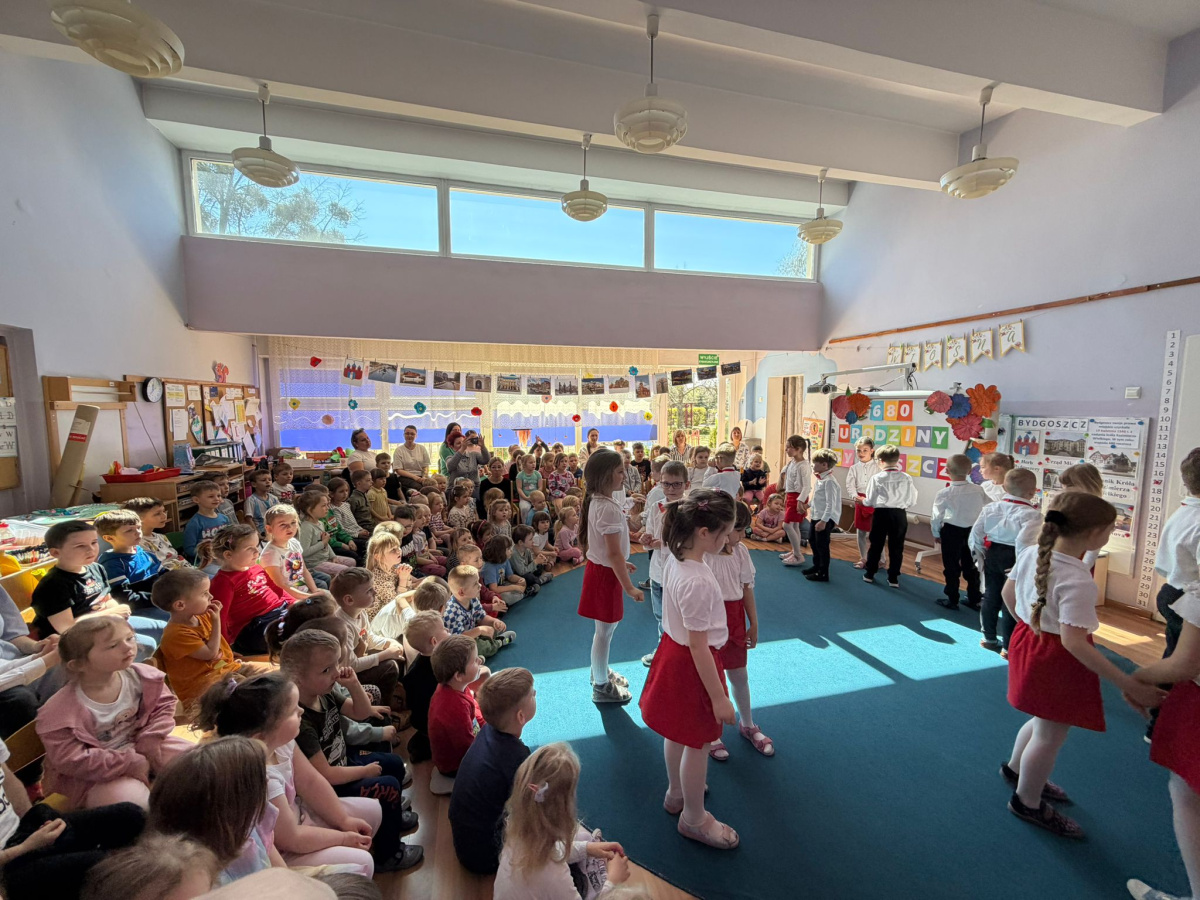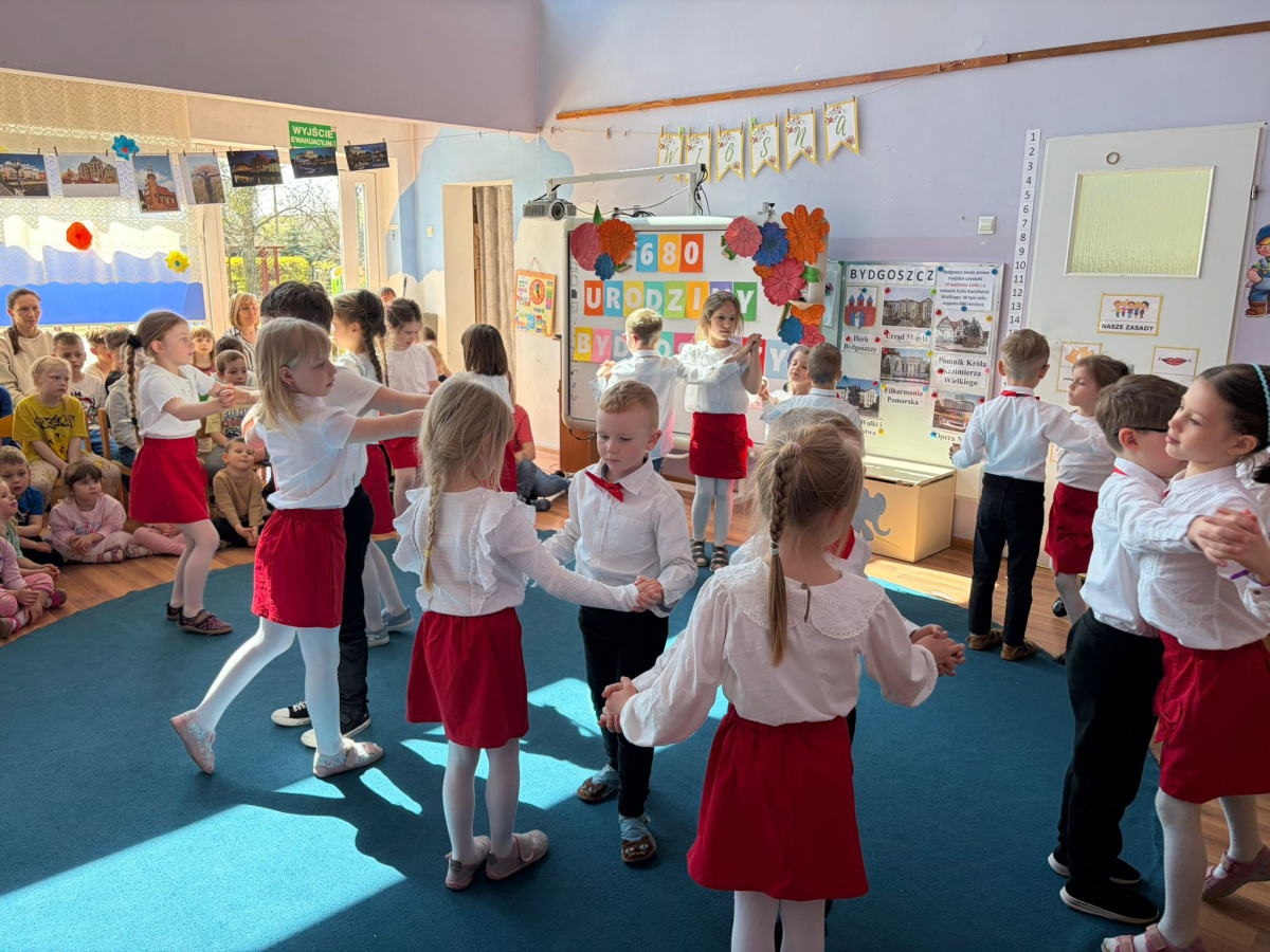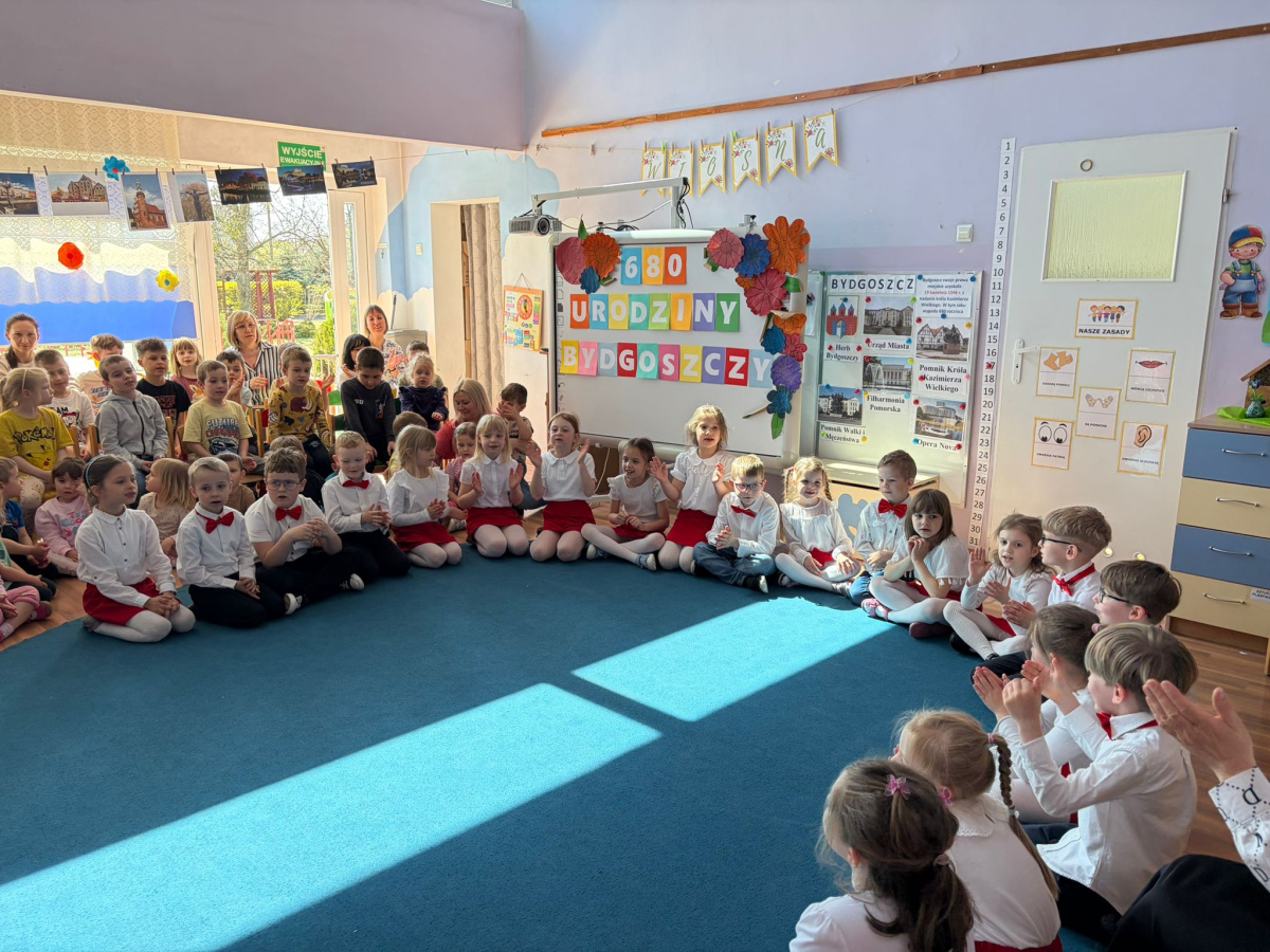 Dzieci ze wszystkich grup włączyły się w obchody 860-lecia miasta Bydgoszcz. Przedszkolaki poznały piosenkę o Bydgoszczy, zapoznały sie z flagą i herbem naszego miasta.
