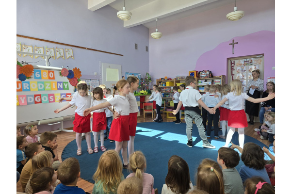 Grupa "Wiewiórki" zaprezentowała wszystkim taniec wywodzacy sie z naszego regionu "Kujawiak".