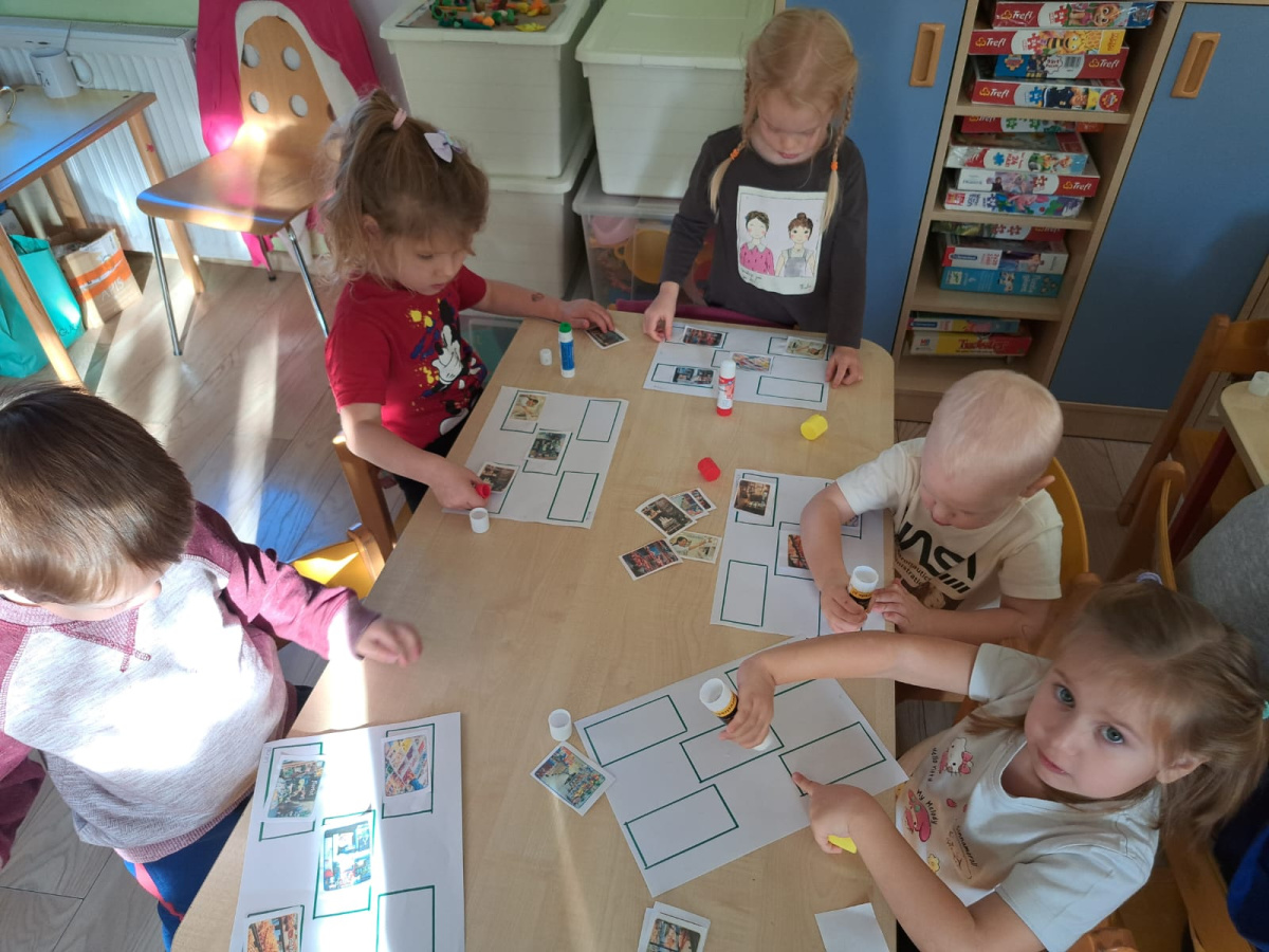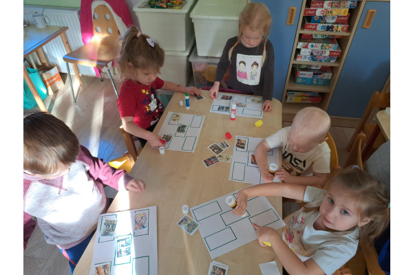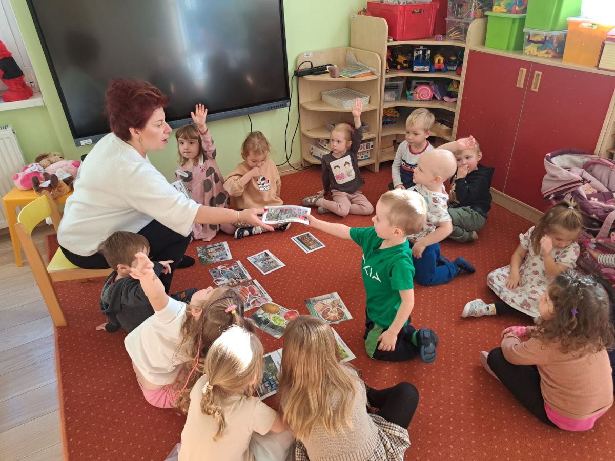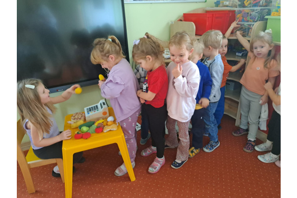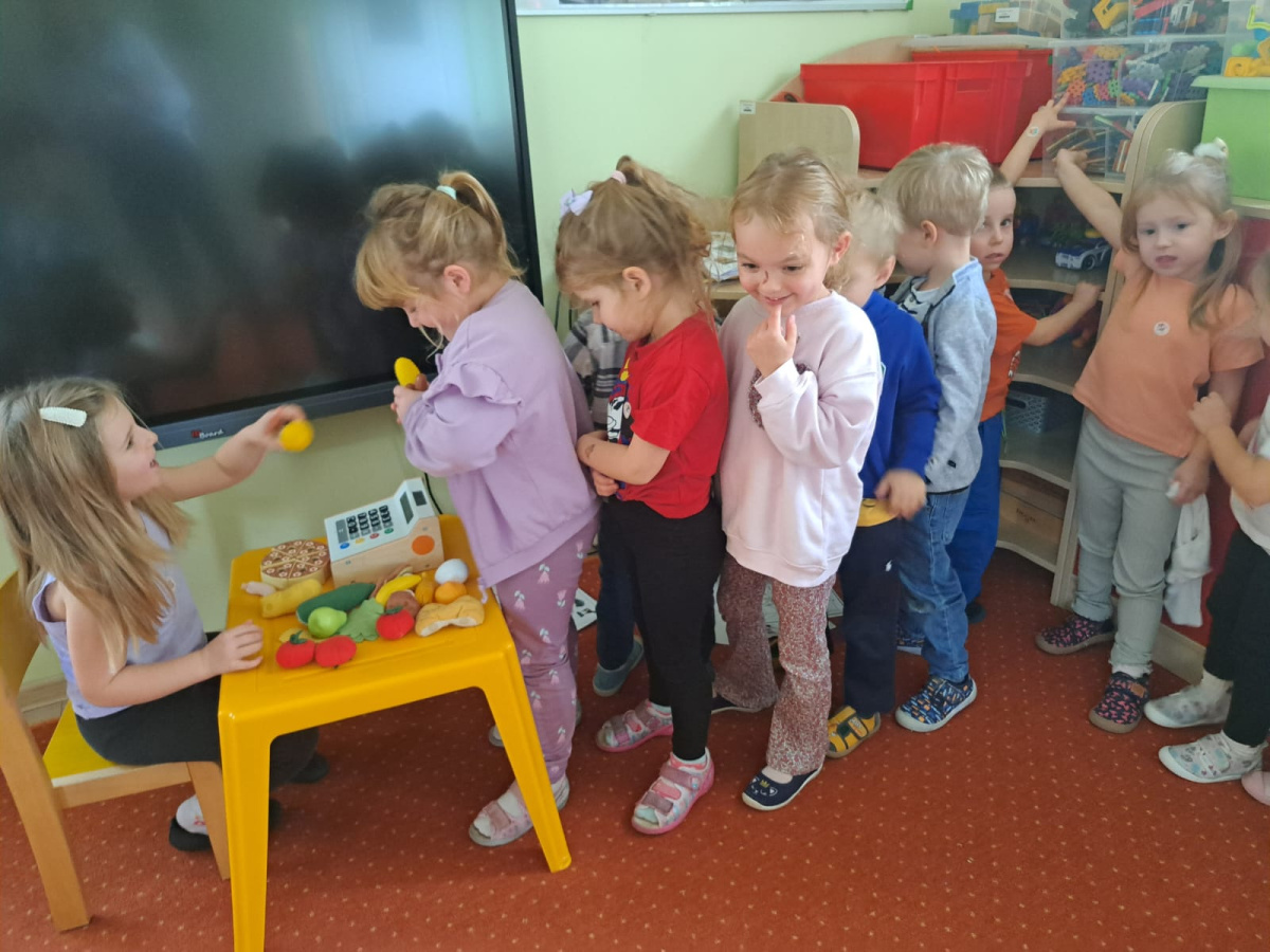 Wykorzystywaliśmy zdobyte wiadomości i doświadczenia związane z robieniem zakupów w wielu zabawach tematycznych zarówno po polsku jak i po angielsku.