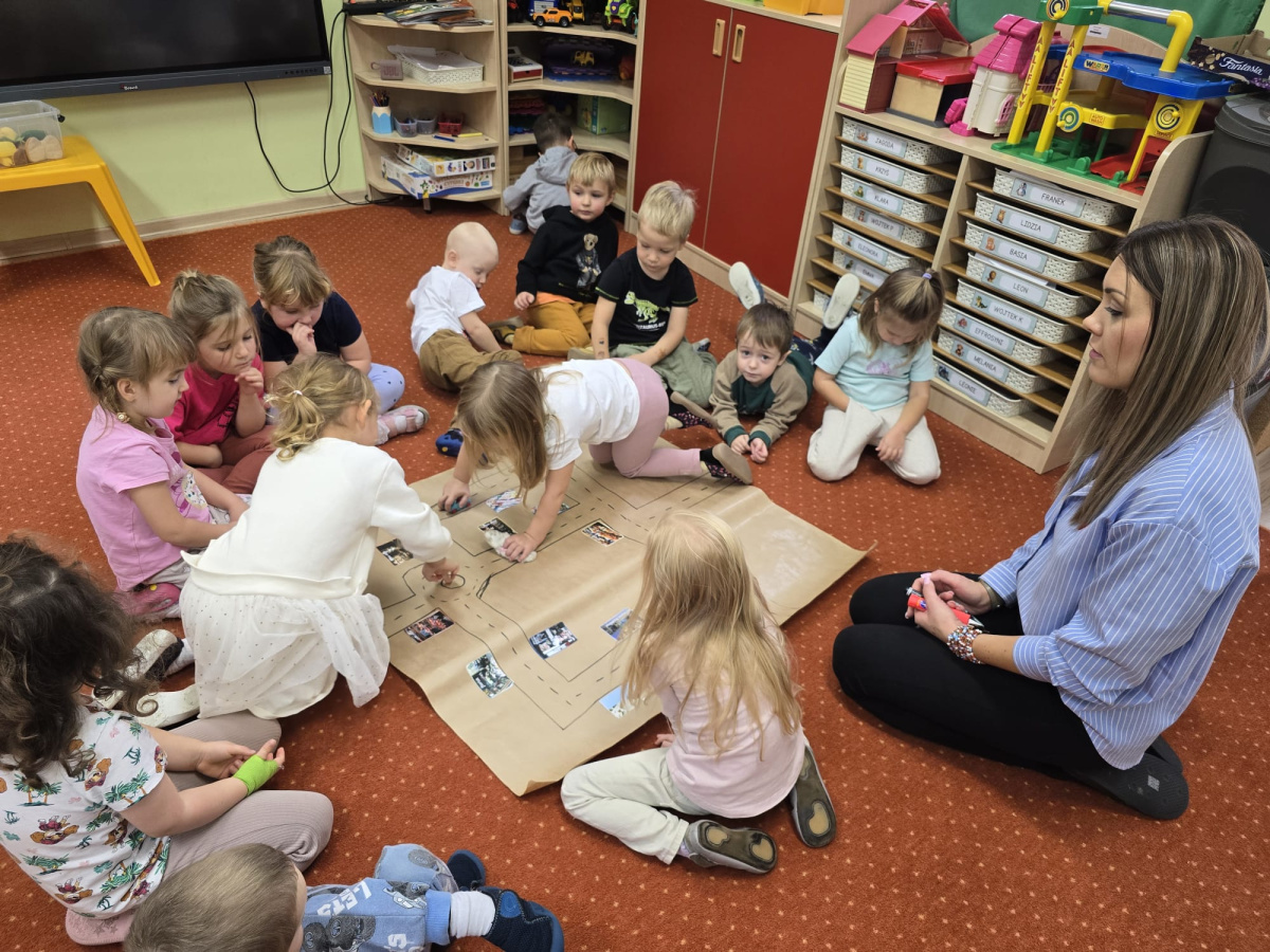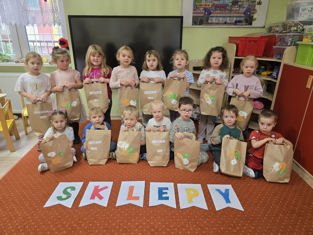 Poznawaliśmy sklepy - ich znaczenie w życiu ludzi, wyposażenie i asortyment oraz pracę ekspedientki. Wiemy jak zachowywać się w miejscach publicznych i stosować formy grzecznościowe. Dopasowywaliśmy towar do określonego sklepu.