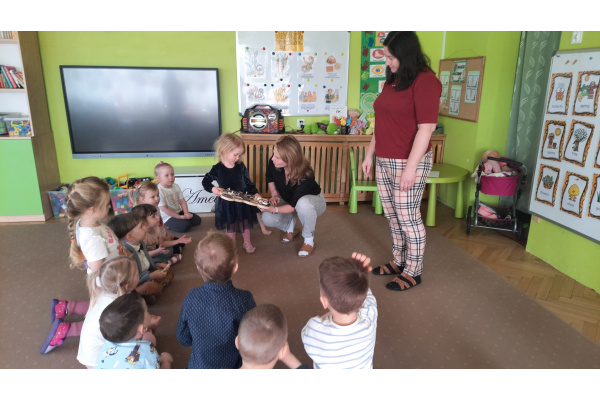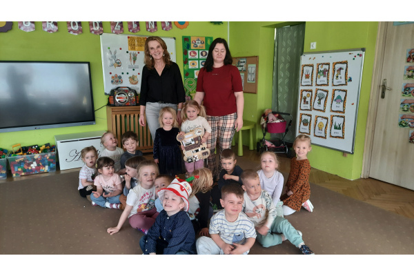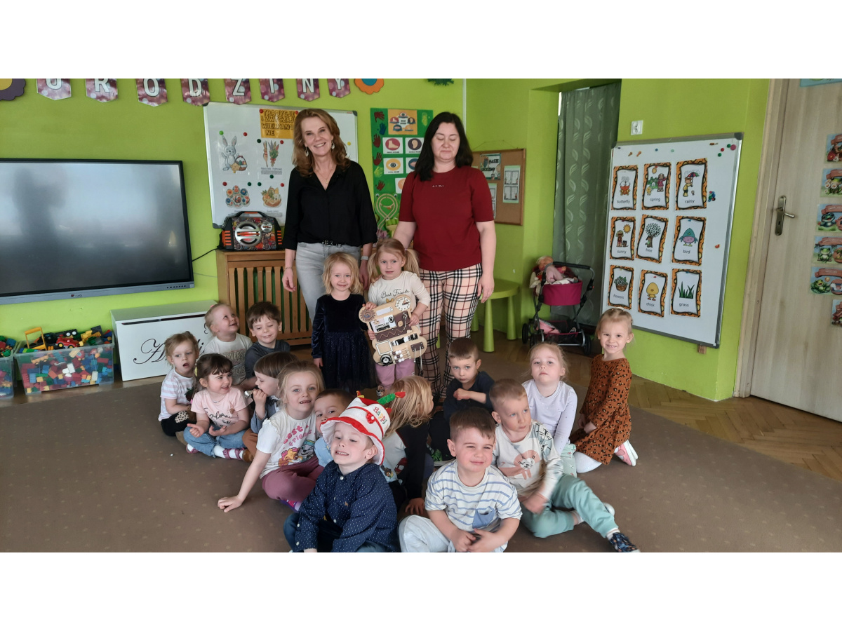Jesteśmy srebrnymi medalistami w zbiórce baterii. Pani dyrektor nagrodziła nas wspaniałą nową zabawką.