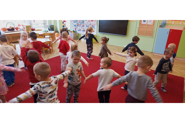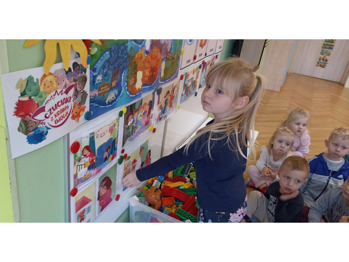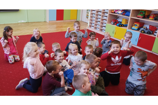 Przedszkolaki poznaną emocję wyrażały ekspresyjnie ruchem i mimiką.