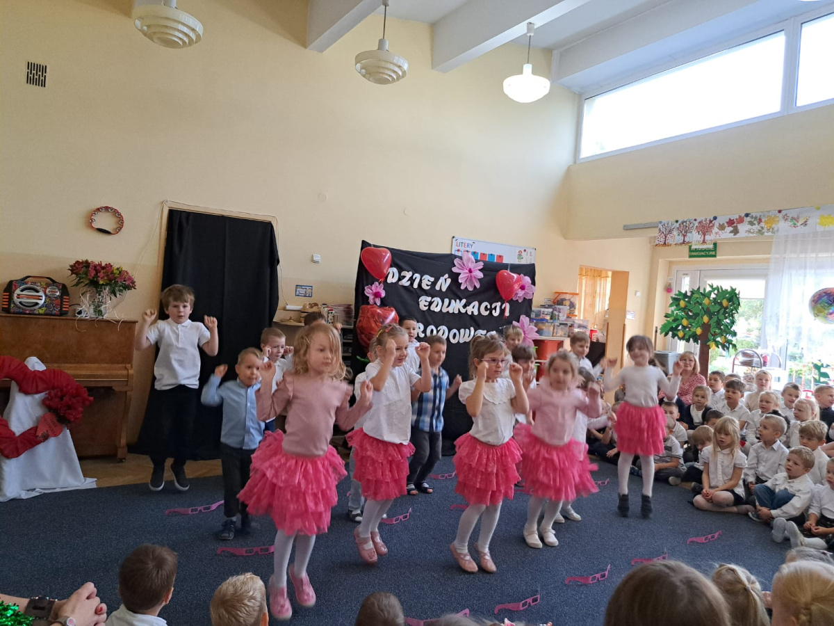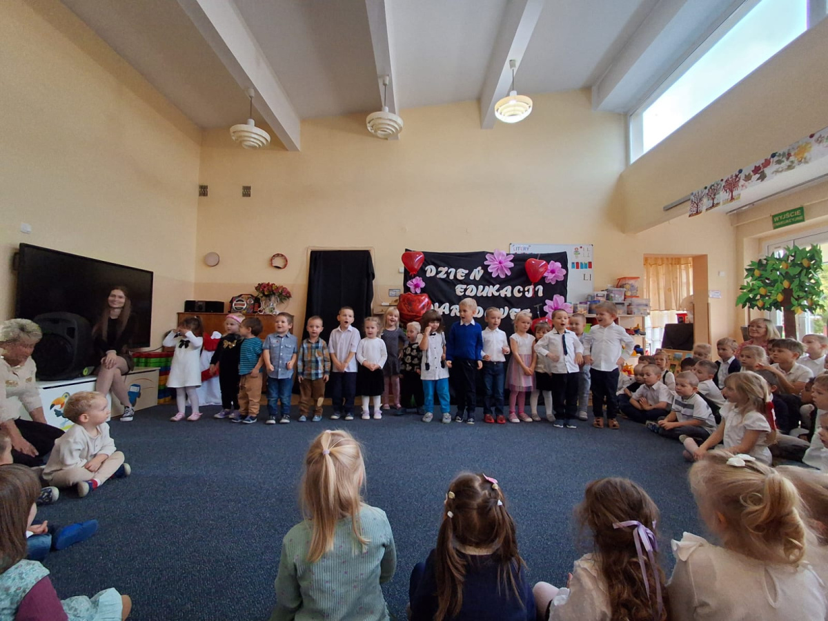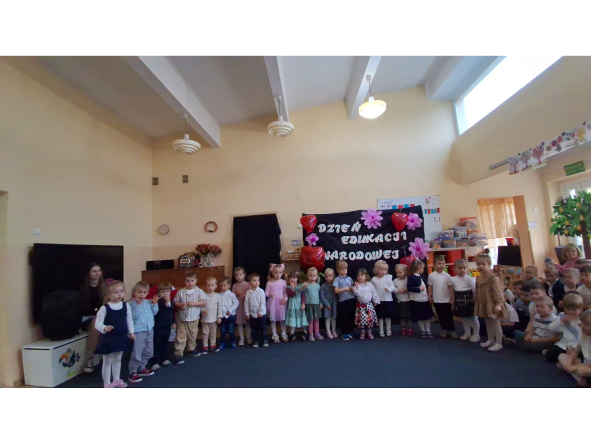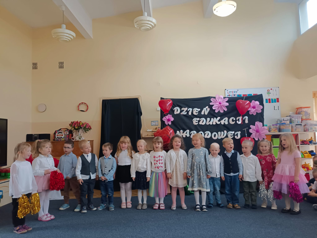 14 października obchodzony jest Dzień Edukacji Narodowej. Świętowaliśmy ten dzień wszyscy razem. W tym roku każda grupa przygotowała piosenkę lub wierszyk z tej okazji, które prezentowane były w czasie wspólnego występu. To był bardzo udany dzień.
