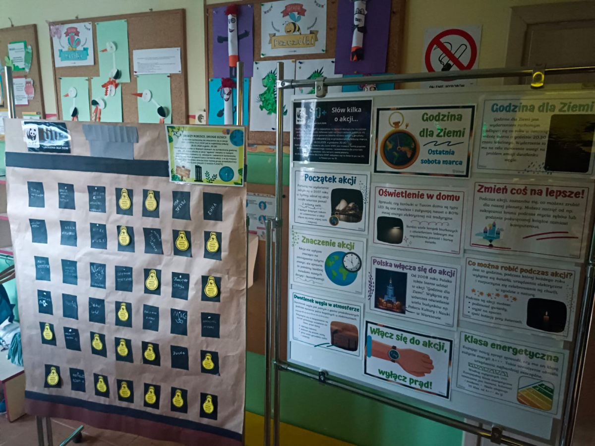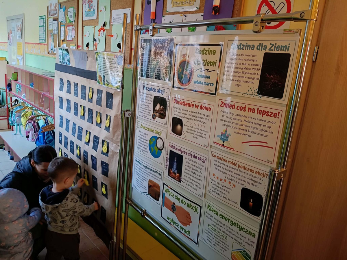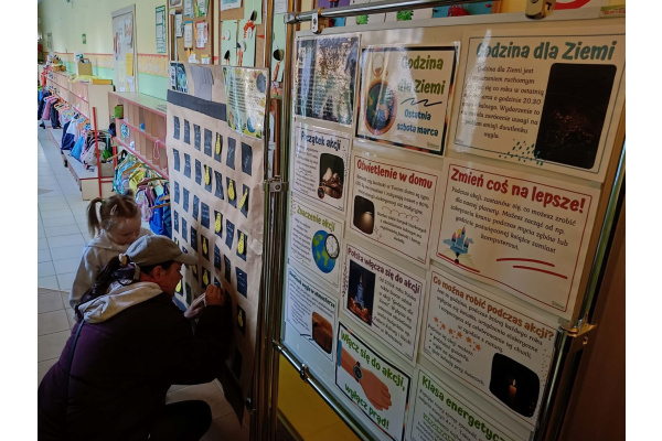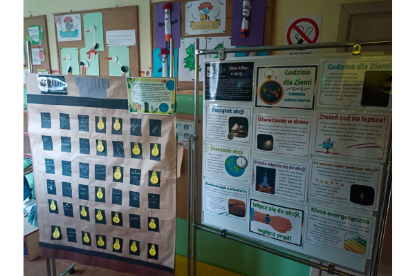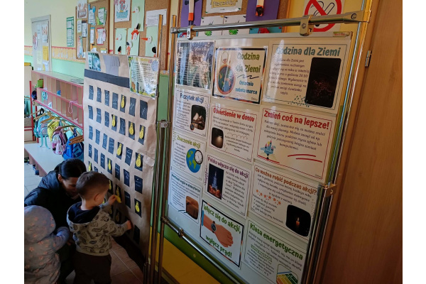Nasze przedszkole zachęcało dzieci i rodziców do wzięcia udziału w akcji WWF GODZINA DLA ZIEMI. Na tablicy informacyjnej rodzice mogli dowiedzieć się skąd wziął się pomysł akcji oraz poczytać wiadomości o oszczędzaniu energii, a dzieci wspólnie z rodzicami "Gasili" światła w WIEŻOWCU MAŁYCH ODKRYWCÓW deklarując swój udział w akcji.