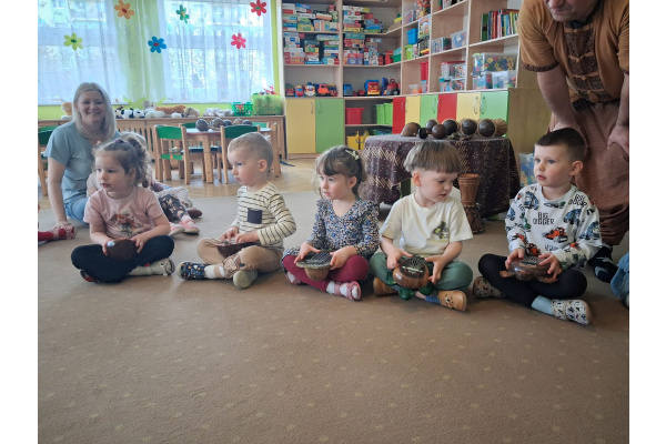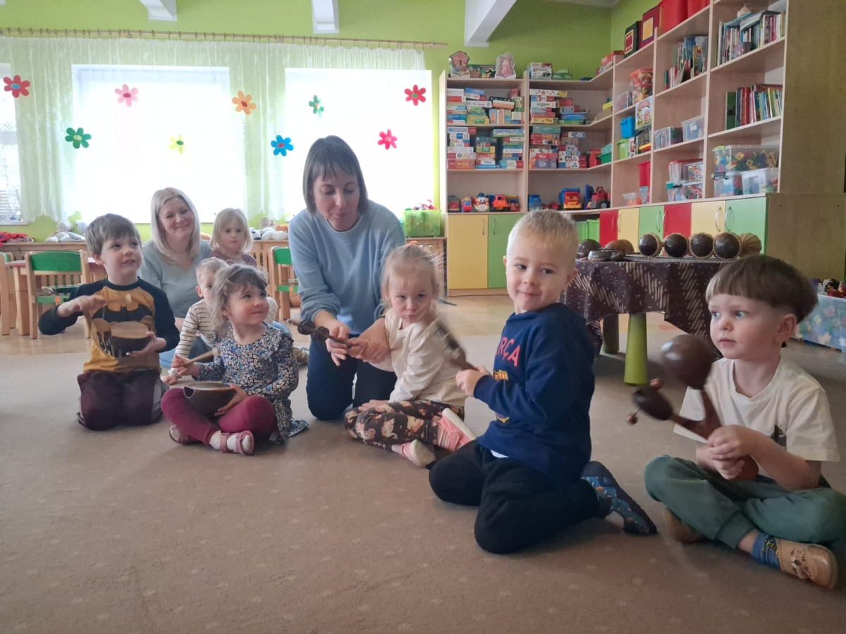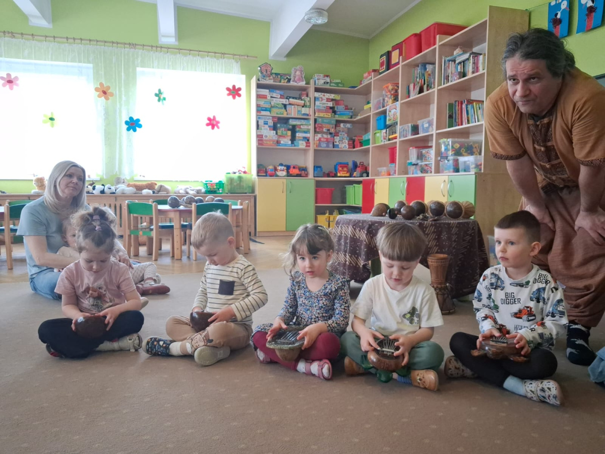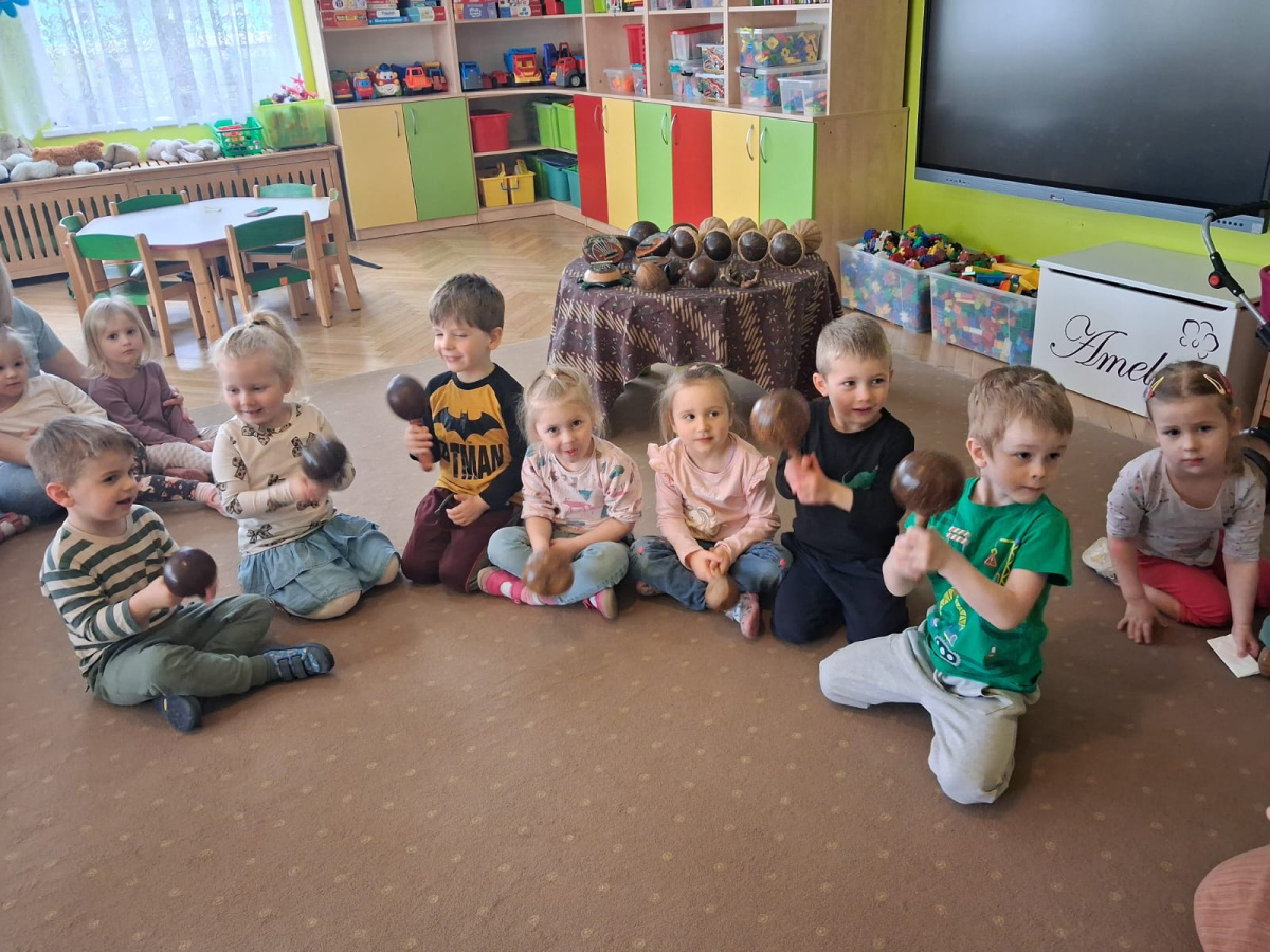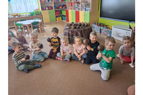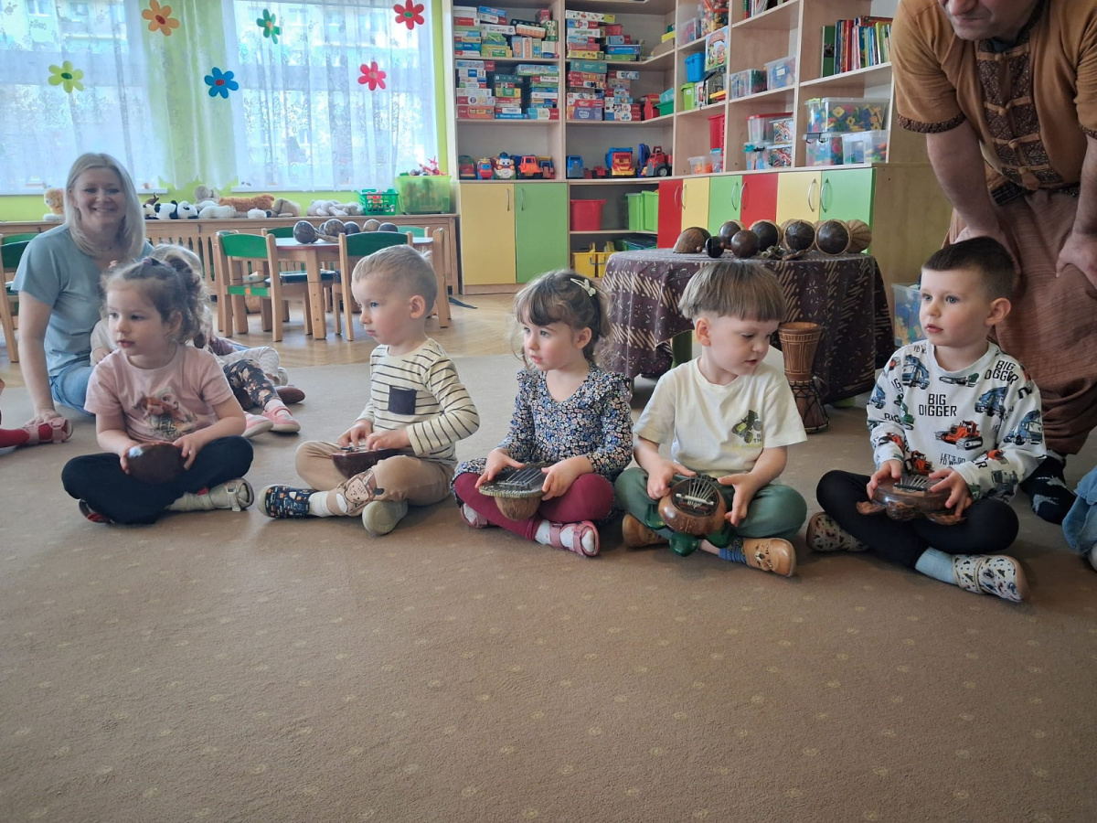 Na kolejnym spotkaniu z Panem Arkiem poznaliśmy wiele instrumentów zrobionych z kokosa. DZIĘKUJEMY za ciekawe zabawy i miło spędzony czas.