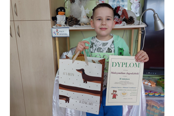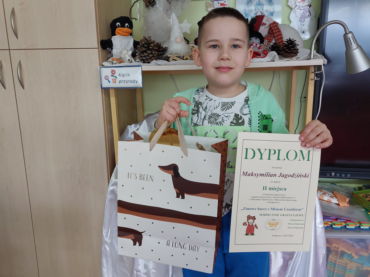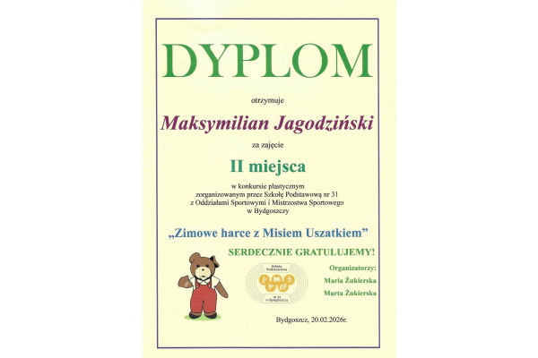 Maks Jagodziński zajął II miejsce w konkursie plastycznym "Zimowe harce z Misiem Uszatkiem" organizowanym przez Szkołe Podstawową nr 31 w Bydgoszczy.