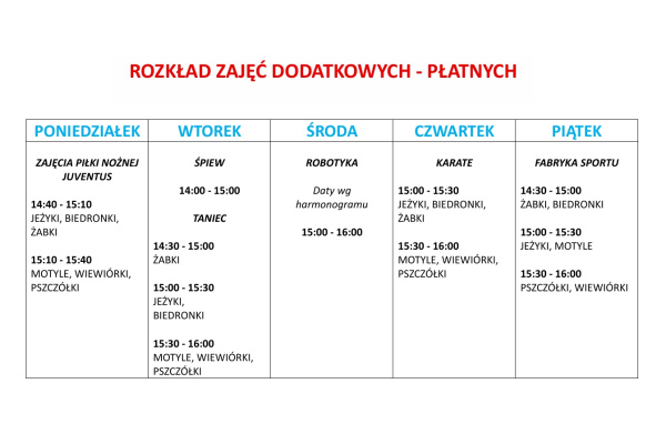 ZAJĘCIA DODATKOWE W PRZEDSZKOLU W ROKU SZKOLNYM 2025/2026