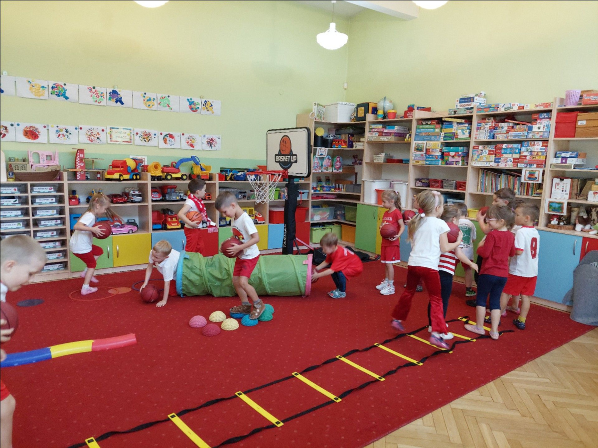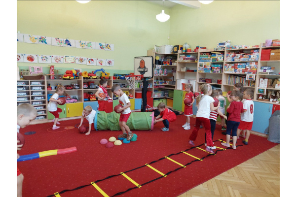 -Zna i stosuje zasady bezpieczeństwa podczas zabawi ćwiczeń ruchowych;