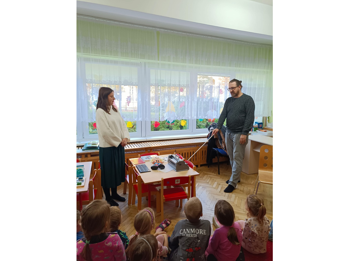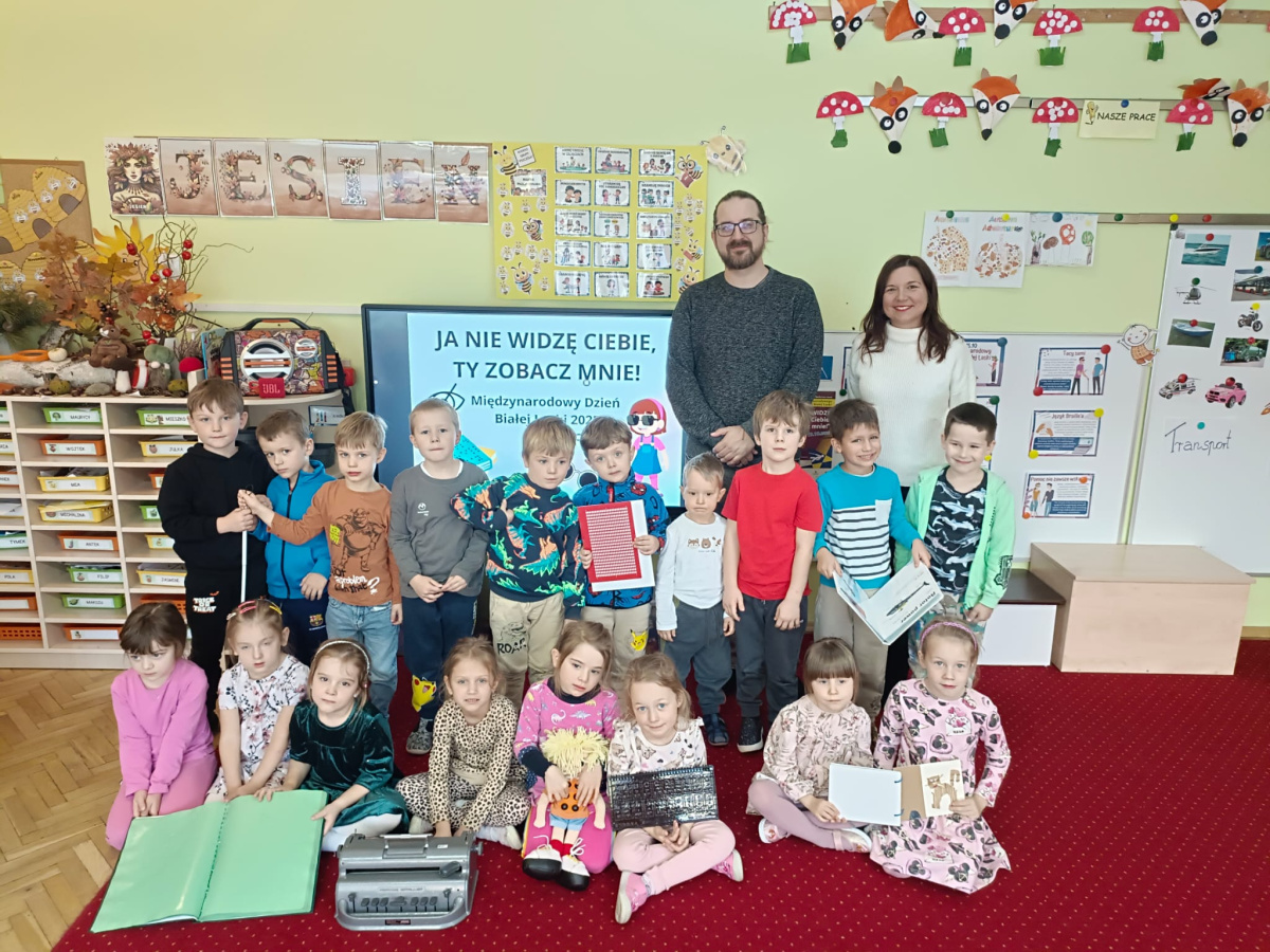 Serdecznie dziękujemy za wizytę naszym gościom - nauczycielom z K-P SOSW nr 1 z Bydgoszczy - pani Marcie i panu Michałowi za przybliżenie nam tematyki związanej z obchodami Międzynarodowego Dnia Białej Laski oraz kampanii "JA NIE WIDZE CIEBIE, TY ZOBACZ MNIE".