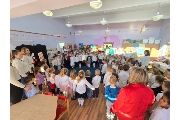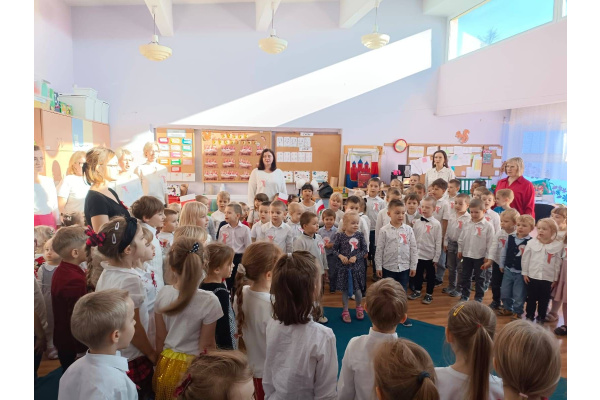 Jeżyki zaśpiewały hymn Polski wspólnie z innymi grupami.