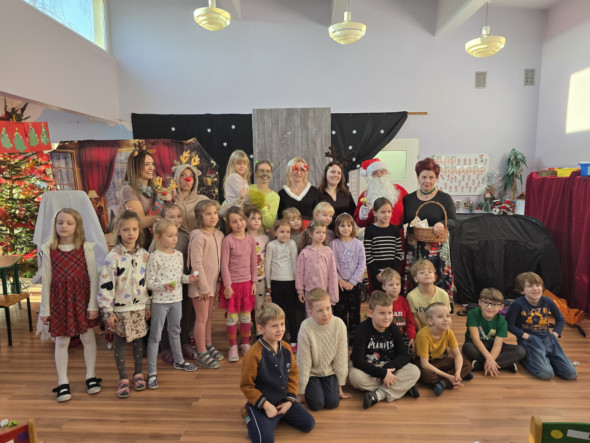 Jak co roku lektorki i nauczycielki przygotowały świateczne przedstawienie dla wszystkich przedszkolaków. Tym razem ktoś ukradł czapkę Mikołajowi.
