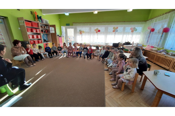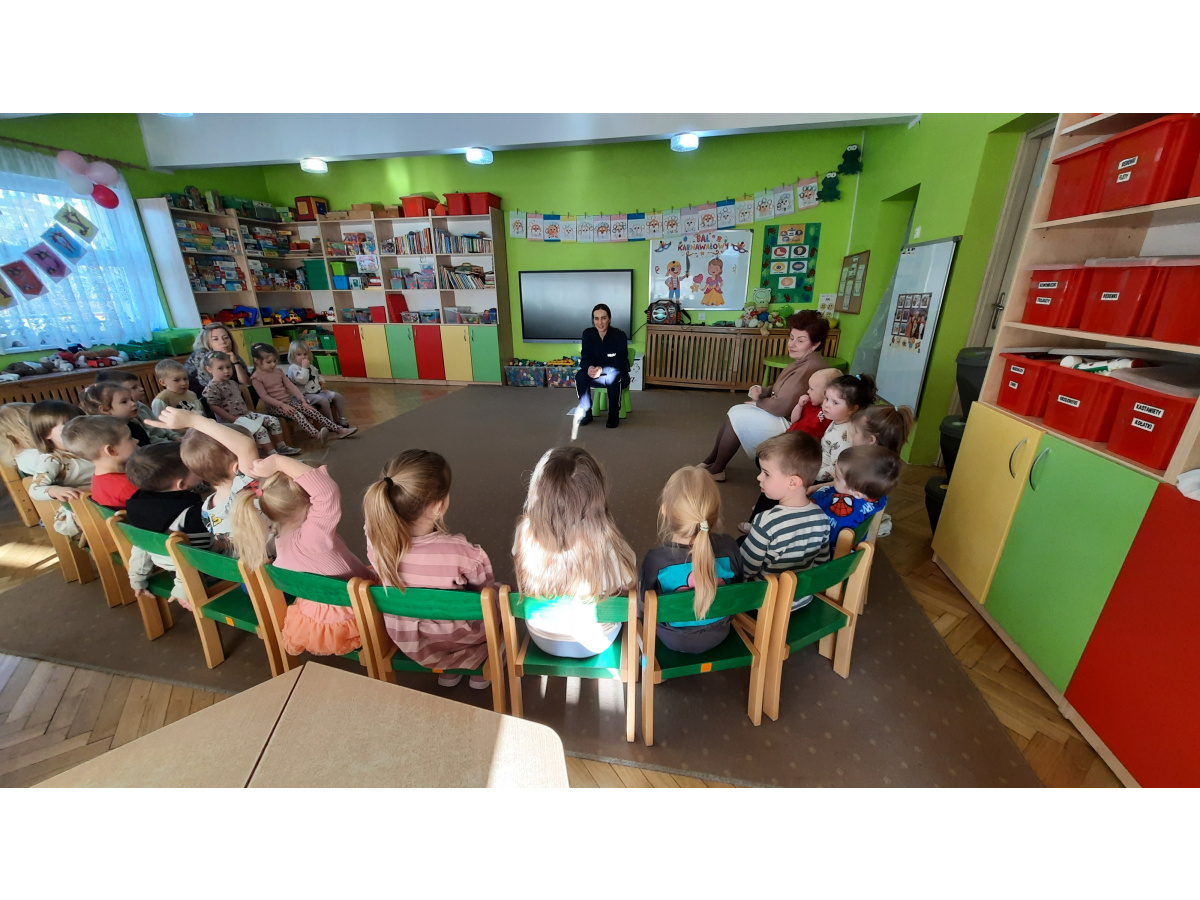 Podczas ferii na spotkaniu z Panią Policjantką dowiedzieliśmy się dużo o jej pracy oraz o tym jak bezpiecznie spędzać wolny czas na świeżym powietrzu w mroźne zimowe dni.