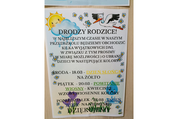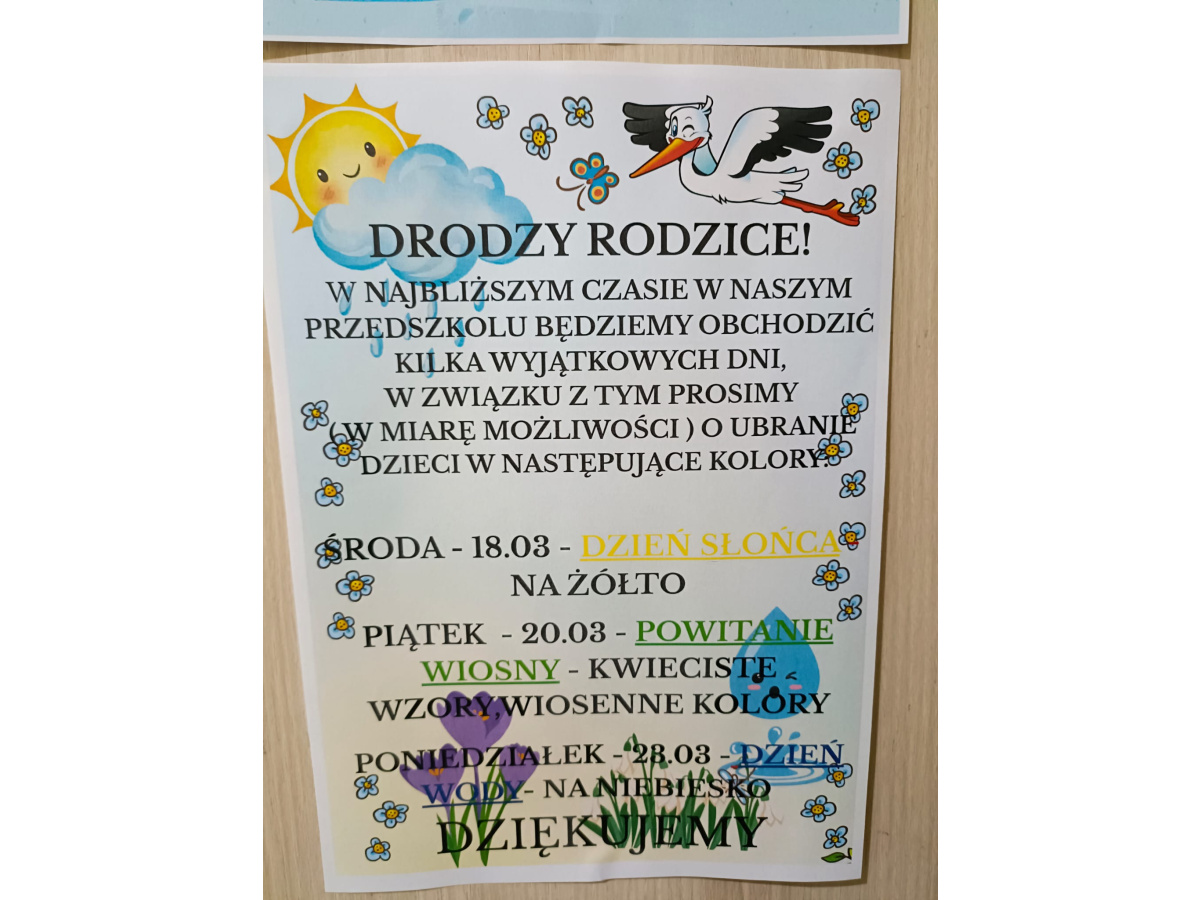 - ŚRODA 18 MARZEC - Dzień Słońca - prosimy o żółte elementy ubrania