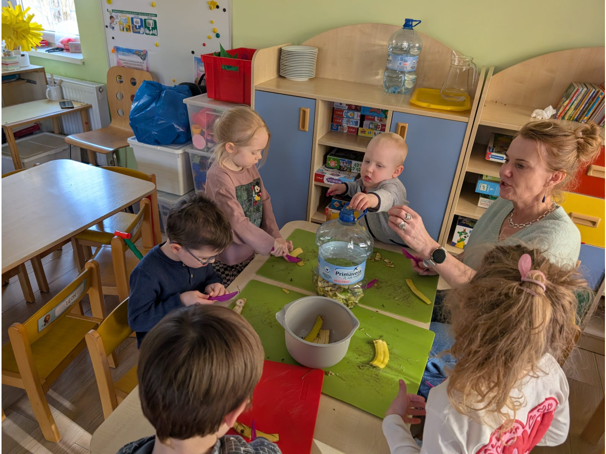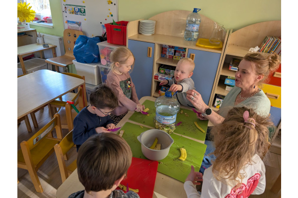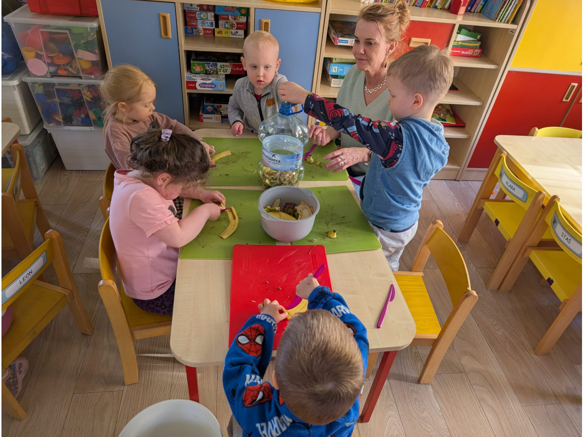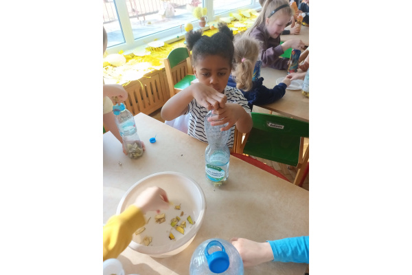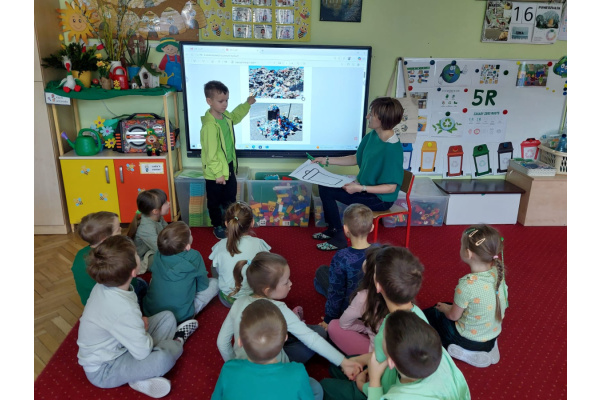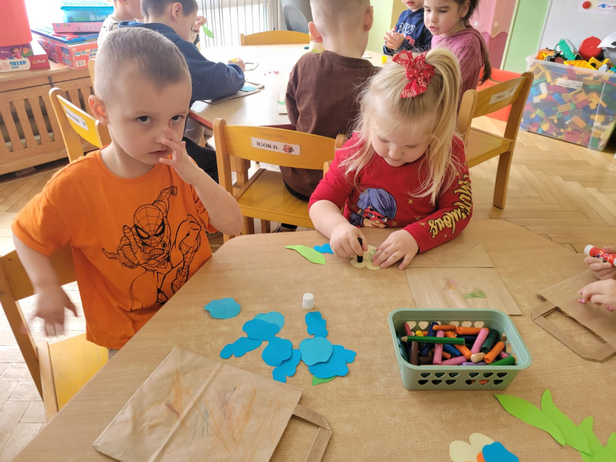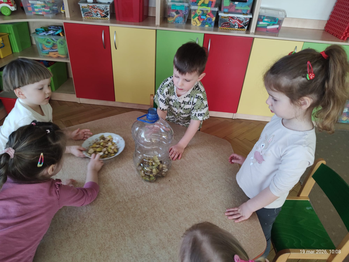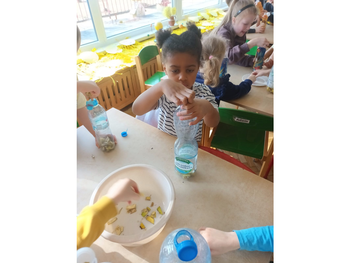 Poznaliśmy zasady nowego stylu życia „zero waste” w tym zasadę „5R”. Dużo rozmawialiśmy o tym, jak generować jak najmniejszą ilość odpadów (szczególnie kartki, chusteczki). Wiemy jak ważna jest segregacja śmieci. Staraliśmy się wdrażać zasady zero waste w codziennych czynnościach.