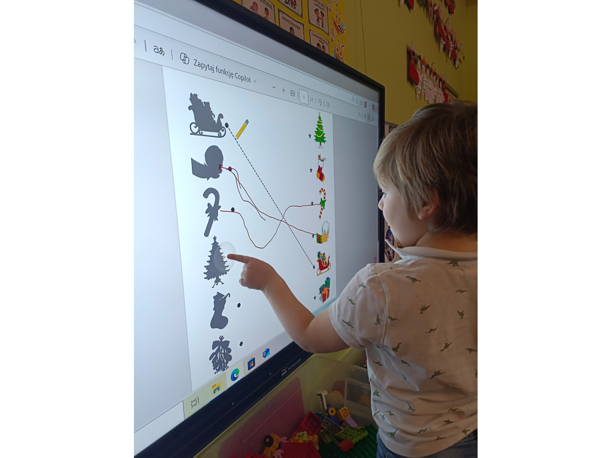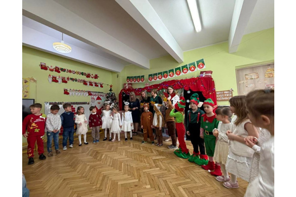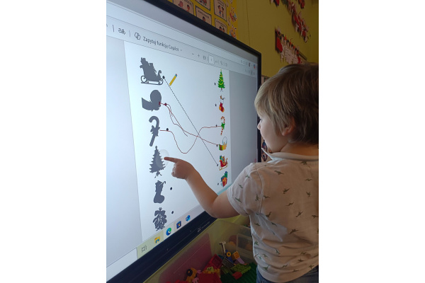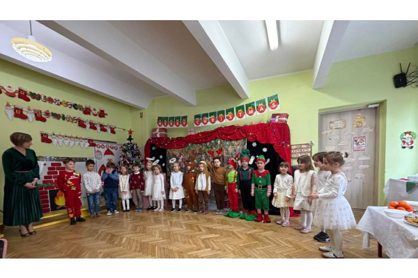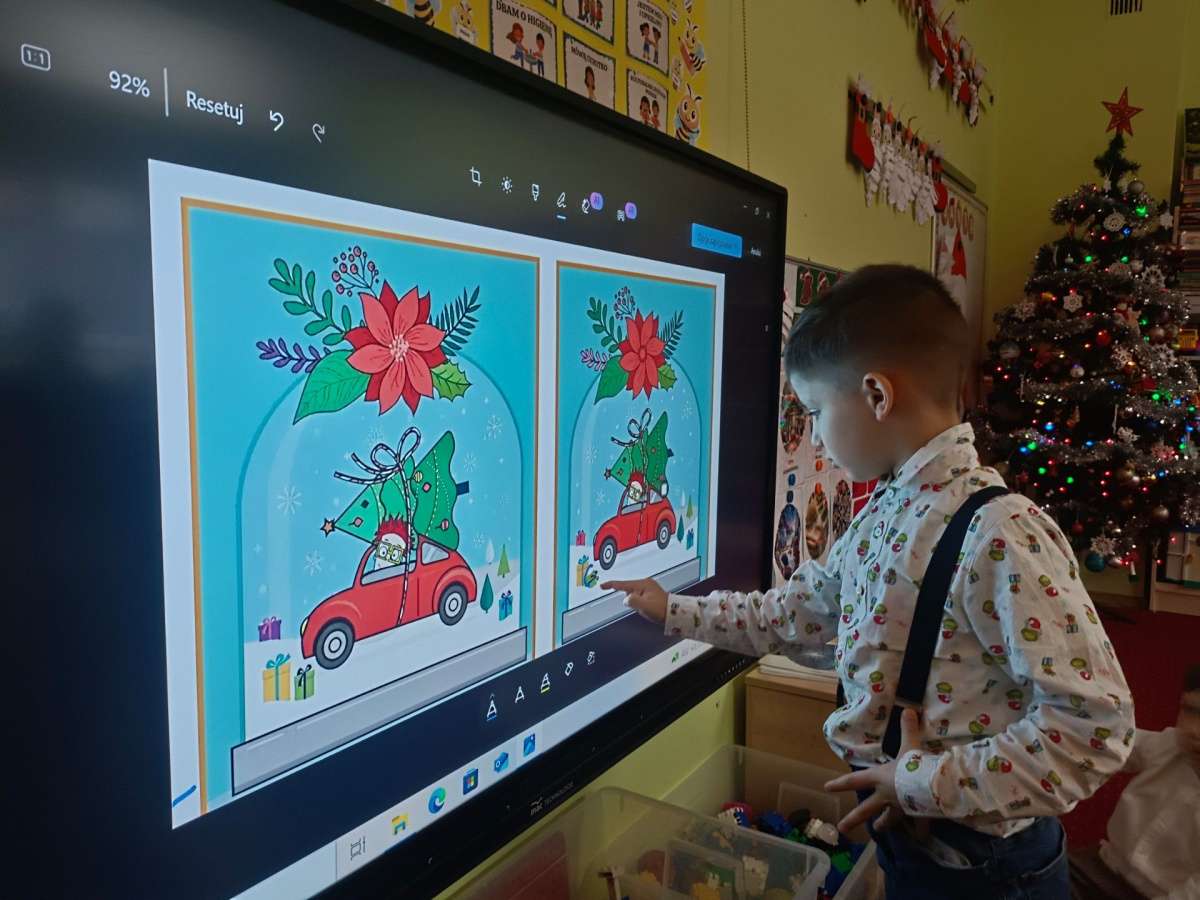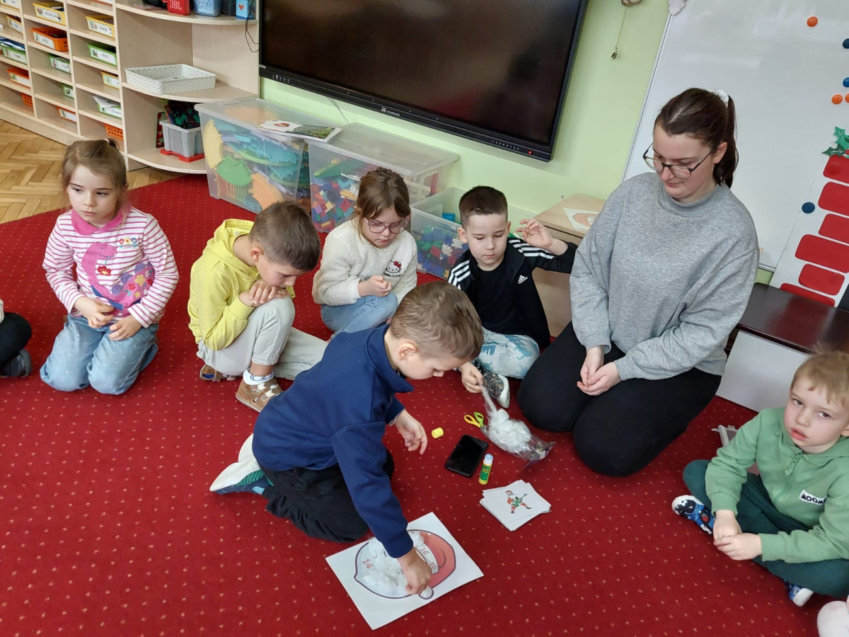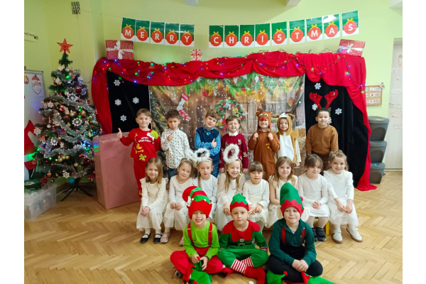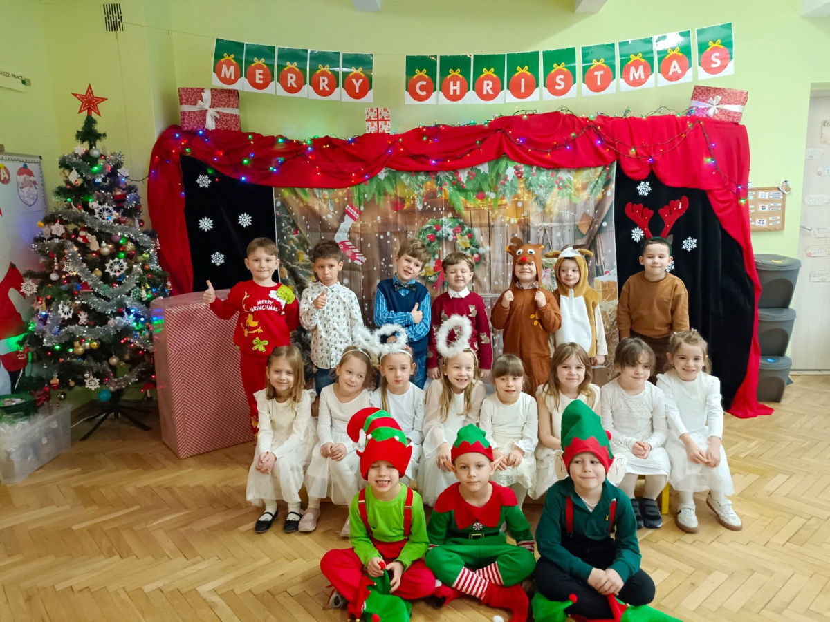 - aktywnie uczestniczy w przygotowaniach do Świąt Bożego Narodzenia: przygotowanie niespodzianek dla najbliższych, pomoc w wykonaniu dekoracji świątecznych sali, wspólne przygotowanie uroczystości – wigilii przedszkolnej,