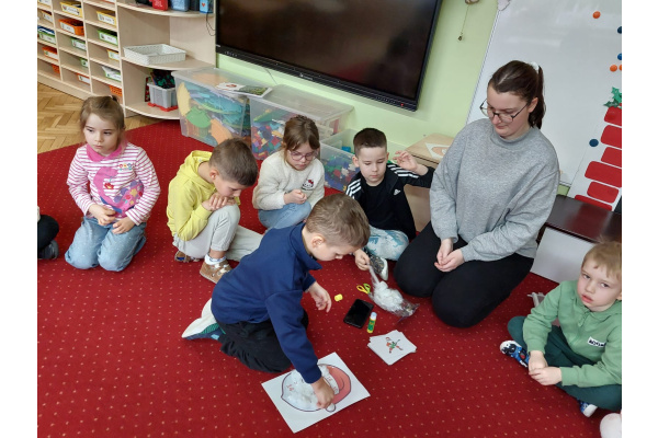 - rozwija umiejętność wnioskowania na podstawie zaobserwowanych związków przyczynowo-skutkowych, porządkuje historyjkę obrazkową według chronologii zdarzeń.