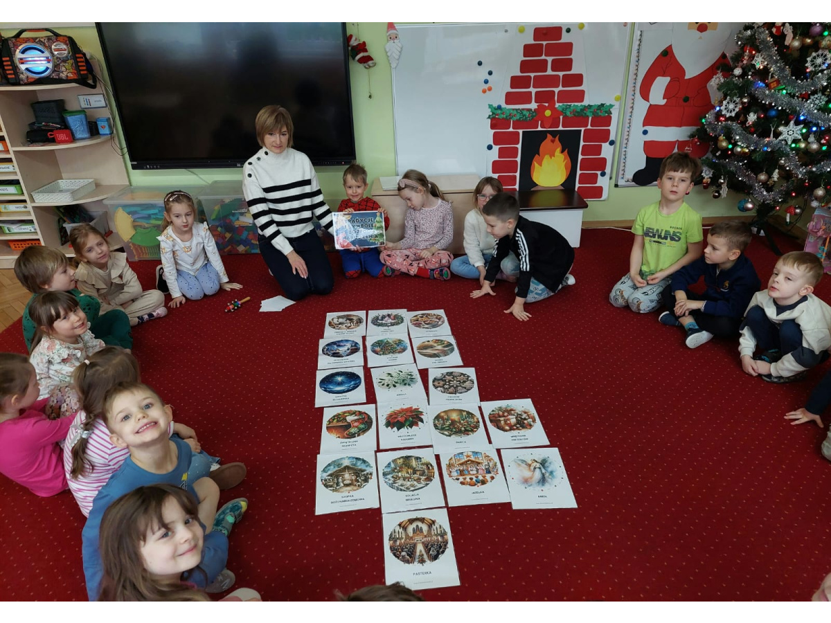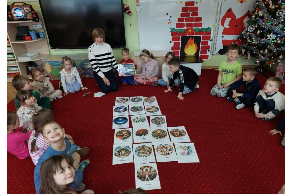 - rozwija kompetencje komunikatywne podczas opowiadania o zwyczajach bożonarodzeniowych w domu rodzinnym oraz poprzez słuchanie wierszy i piosenek przybliżających treść zbliżających się świąt,