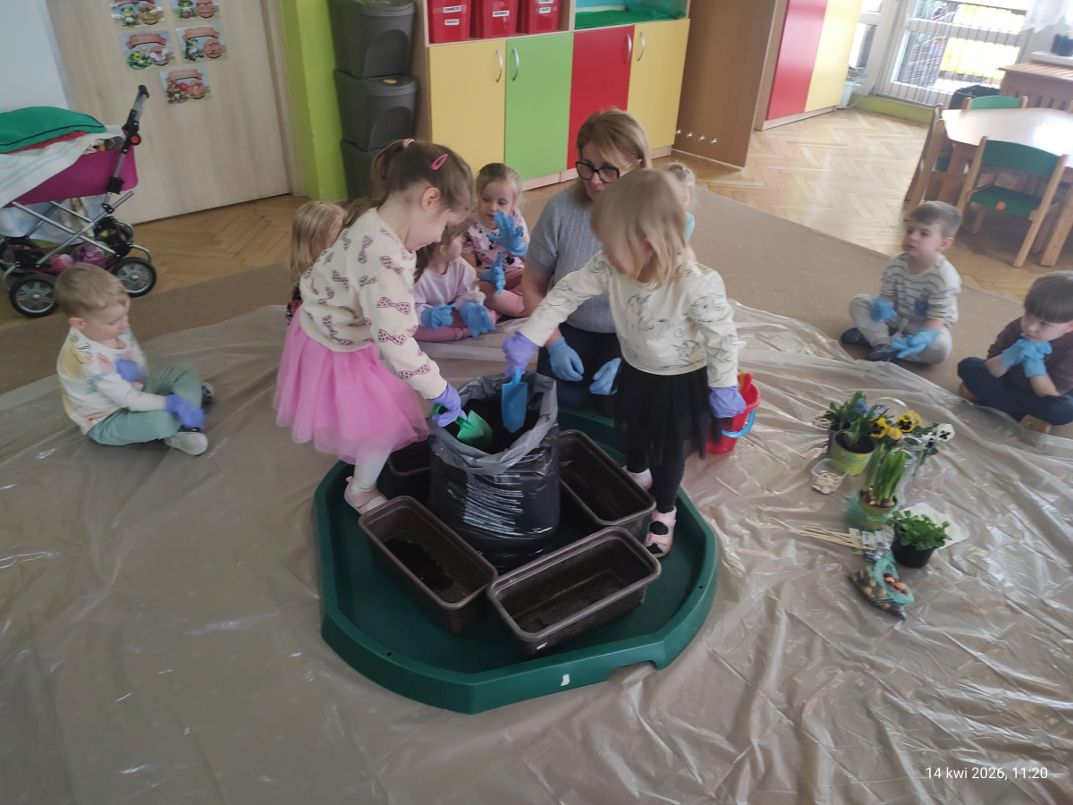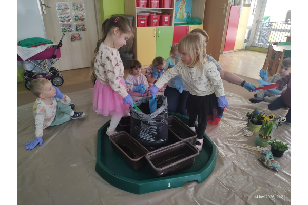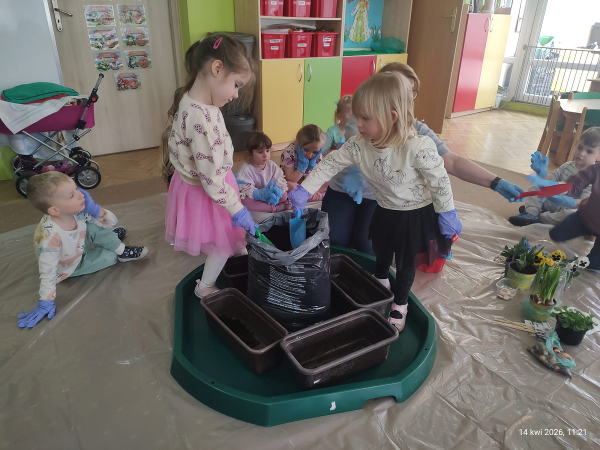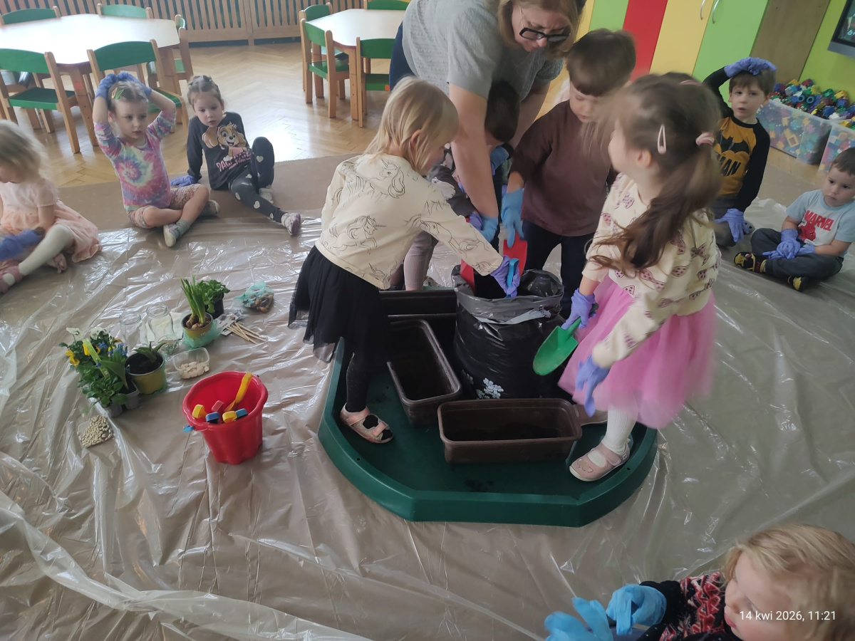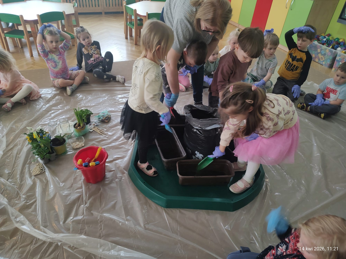W ramach tematu kompleksowego rozmawialiśmy o pracach w wiosennym ogrodzie. Postanowiliśmy, że sami zamienimy się w ogrodników.