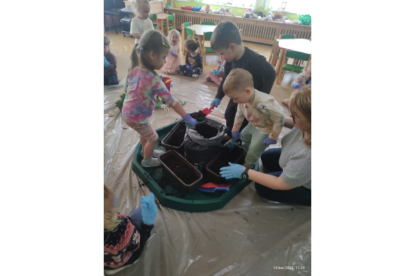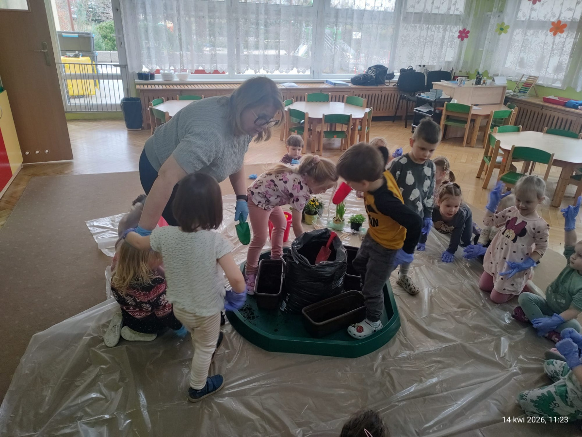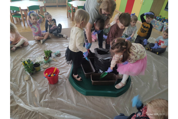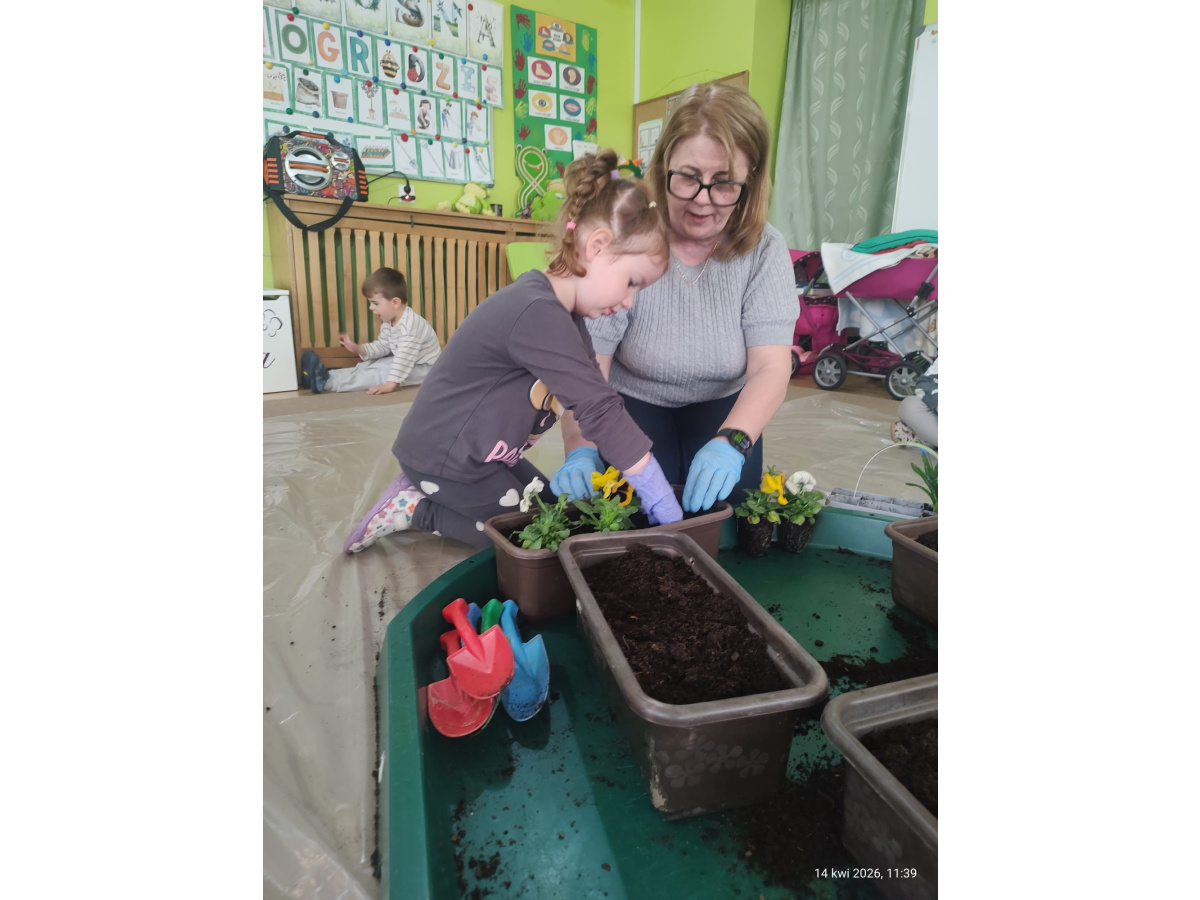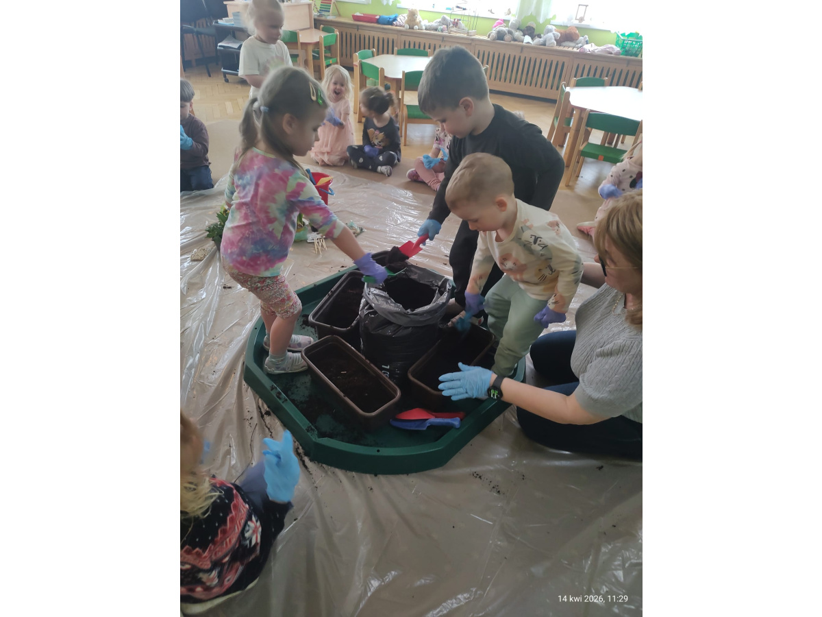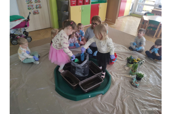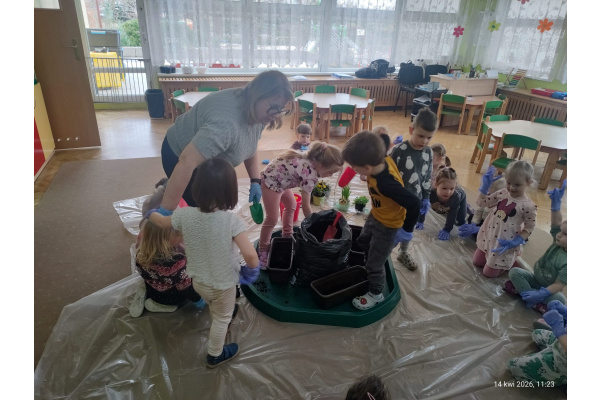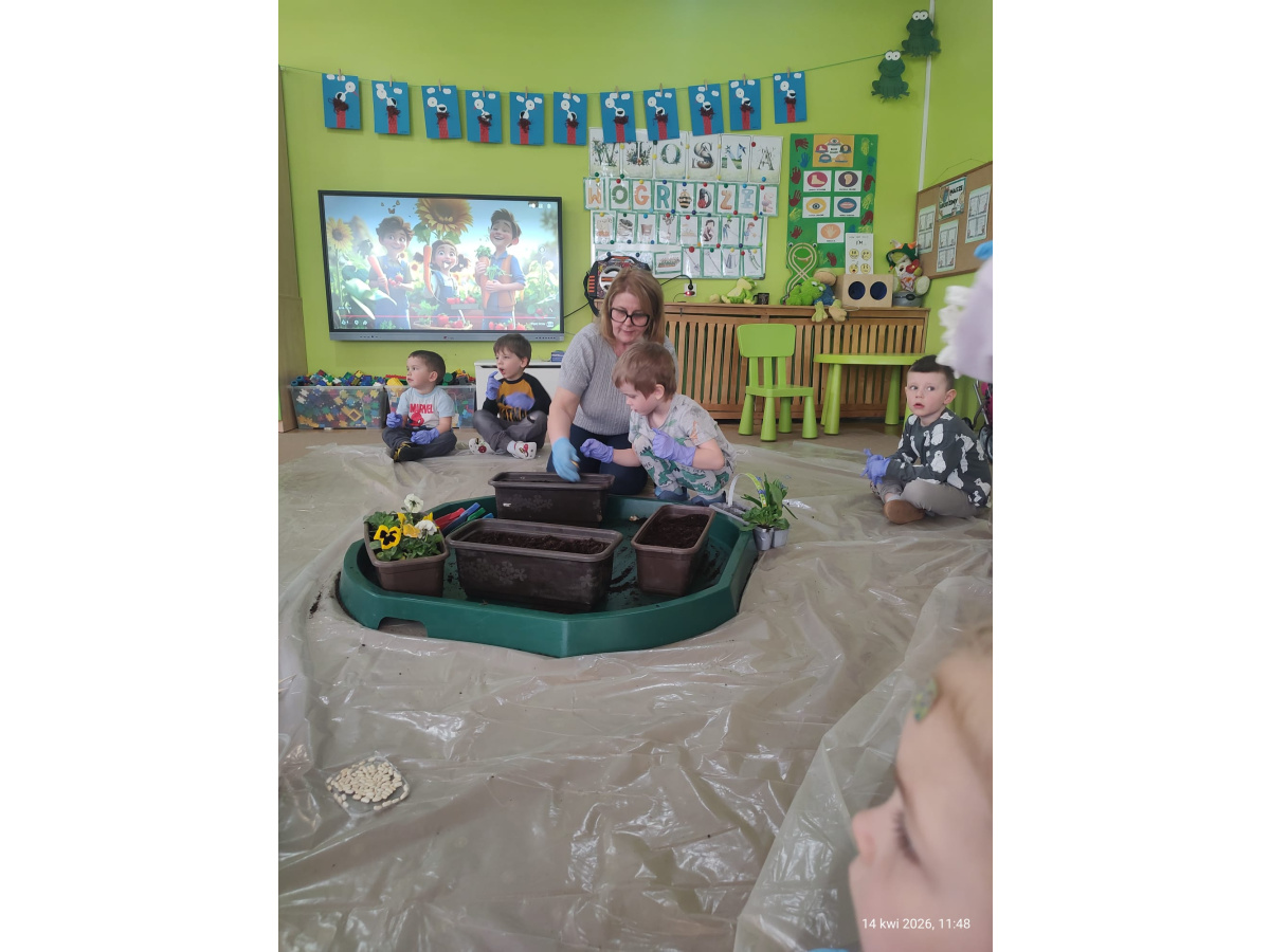 W ramach tematu kompleksowego rozmawialiśmy o pracach w wiosennym ogrodzie. Postanowiliśmy, że sami zamienimy się w ogrodników.