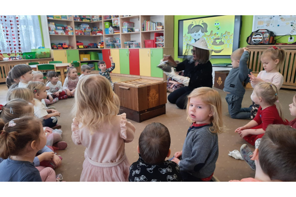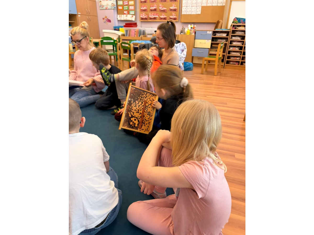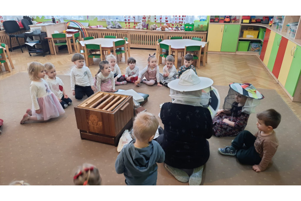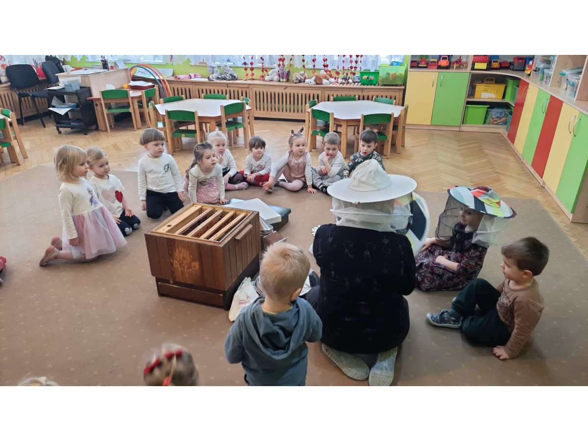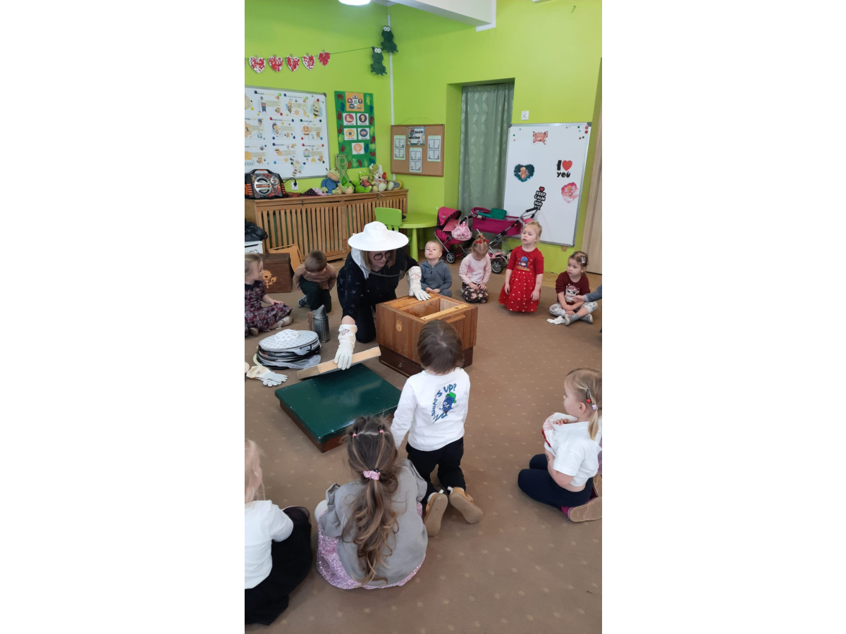 Podczas spotkania dzieci mogły zobaczyć, jak wygląda prawdziwy ul oraz dowiedzieć się, z jakich elementów jest zbudowany. Poznały jego wnętrze i dowiedziały się, kto jest jego mieszkańcem. Przedszkolaki zdobyły wiedzę na temat tego, w jaki sposób pszczoły zbierają nektar z kwiatów, a następnie przetwarzają go, tworząc miód.