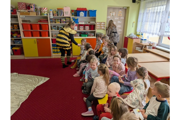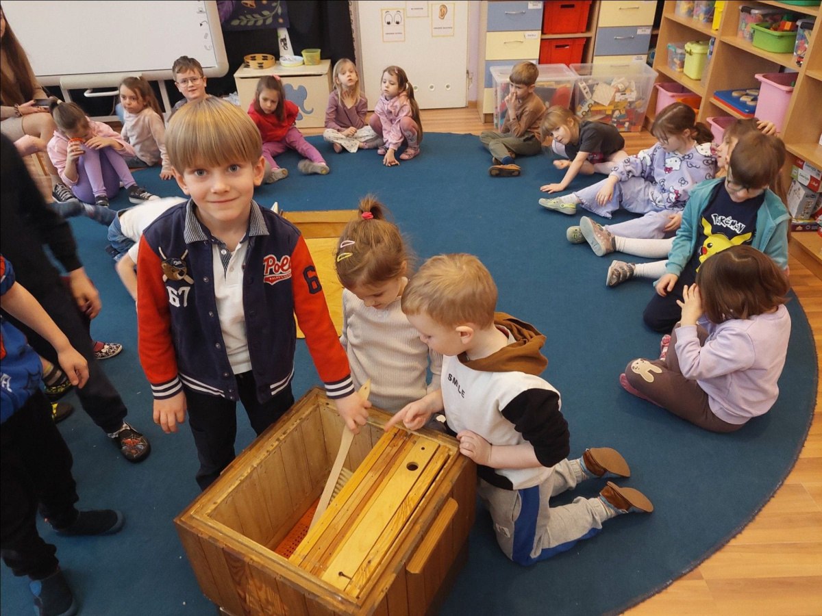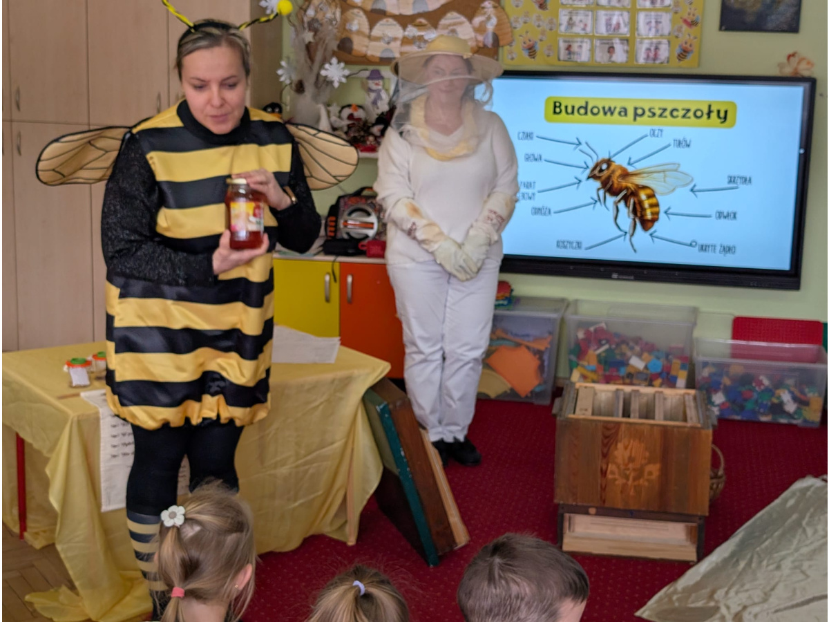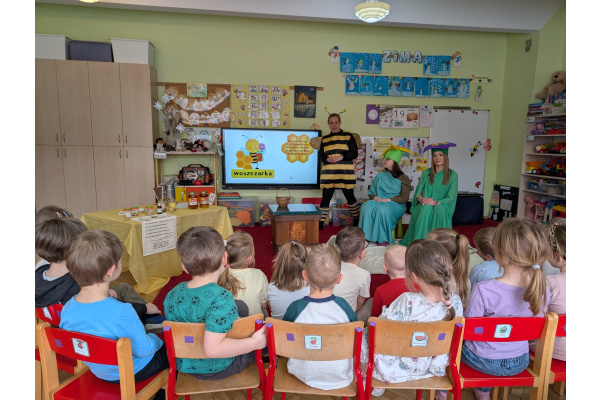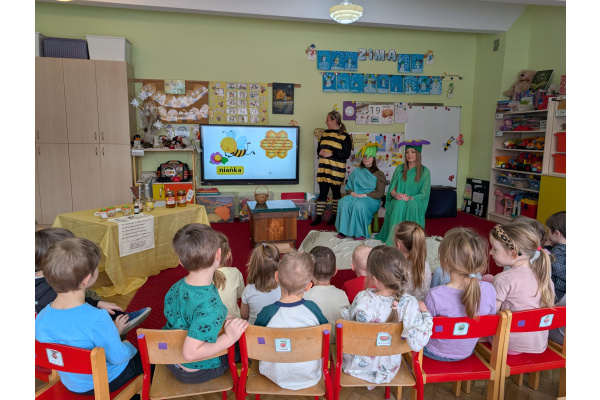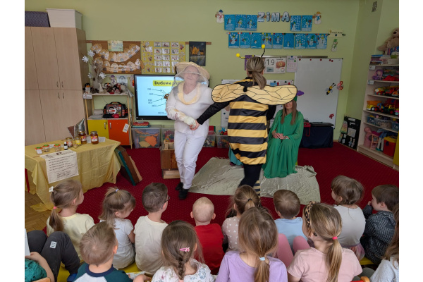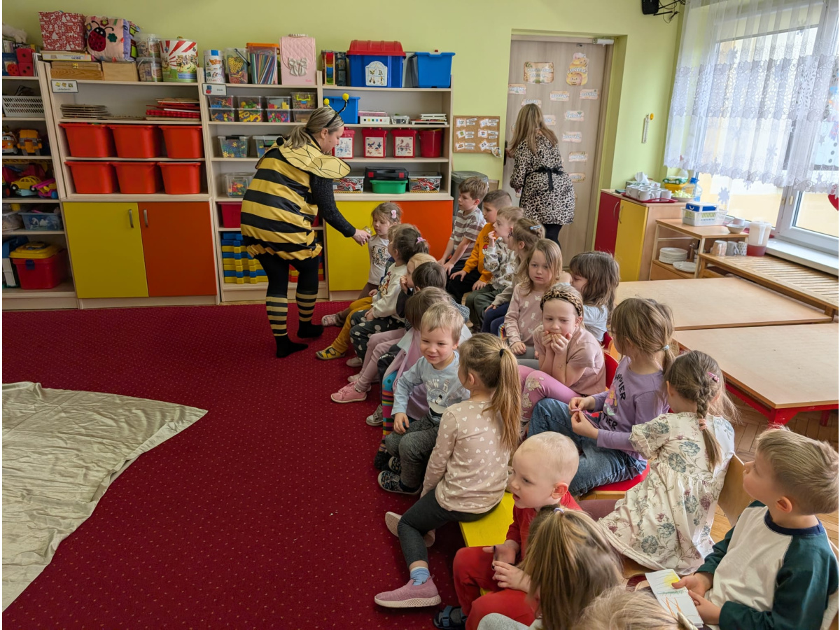 Podczas spotkania dzieci mogły zobaczyć, jak wygląda prawdziwy ul oraz dowiedzieć się, z jakich elementów jest zbudowany. Poznały jego wnętrze i dowiedziały się, kto jest jego mieszkańcem. Przedszkolaki zdobyły wiedzę na temat tego, w jaki sposób pszczoły zbierają nektar z kwiatów, a następnie przetwarzają go, tworząc miód.