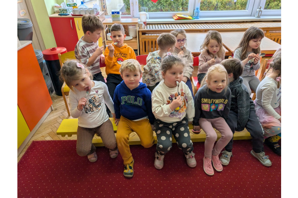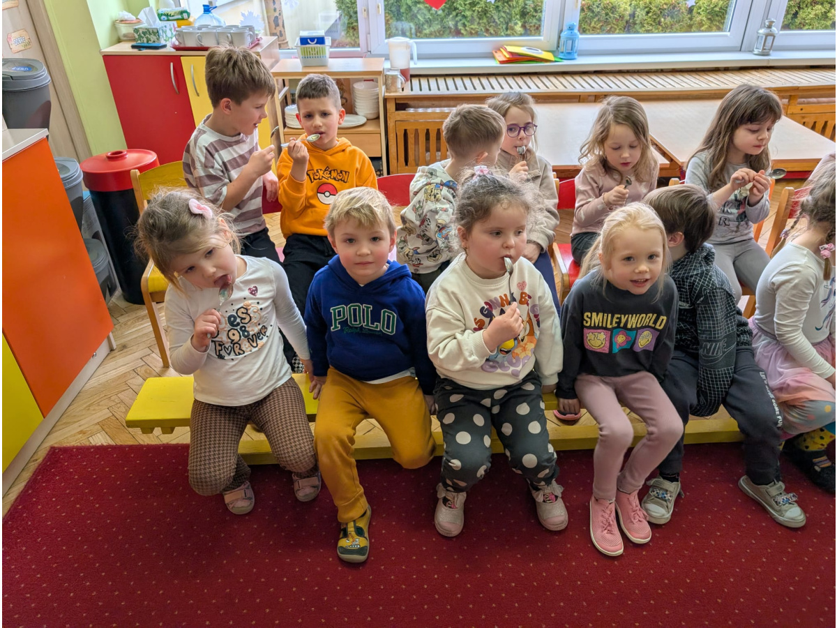 Na zakończenie spotkania dzieci mogły spróbować prawdziwego miodu, co było dla nich pysznym i niezapomnianym doświadczeniem.
