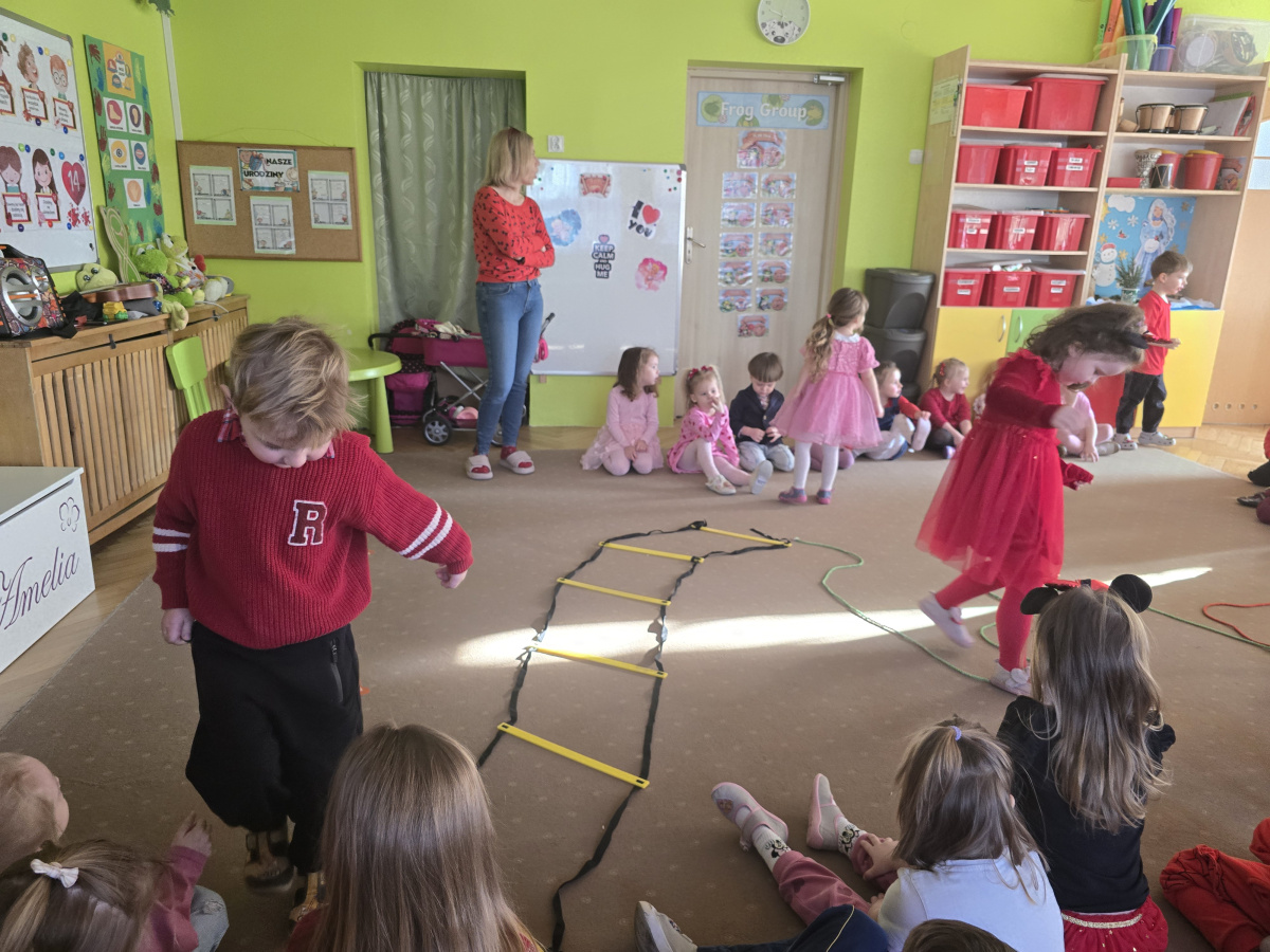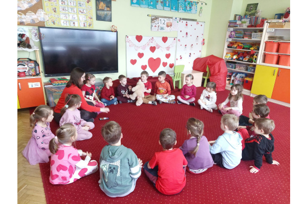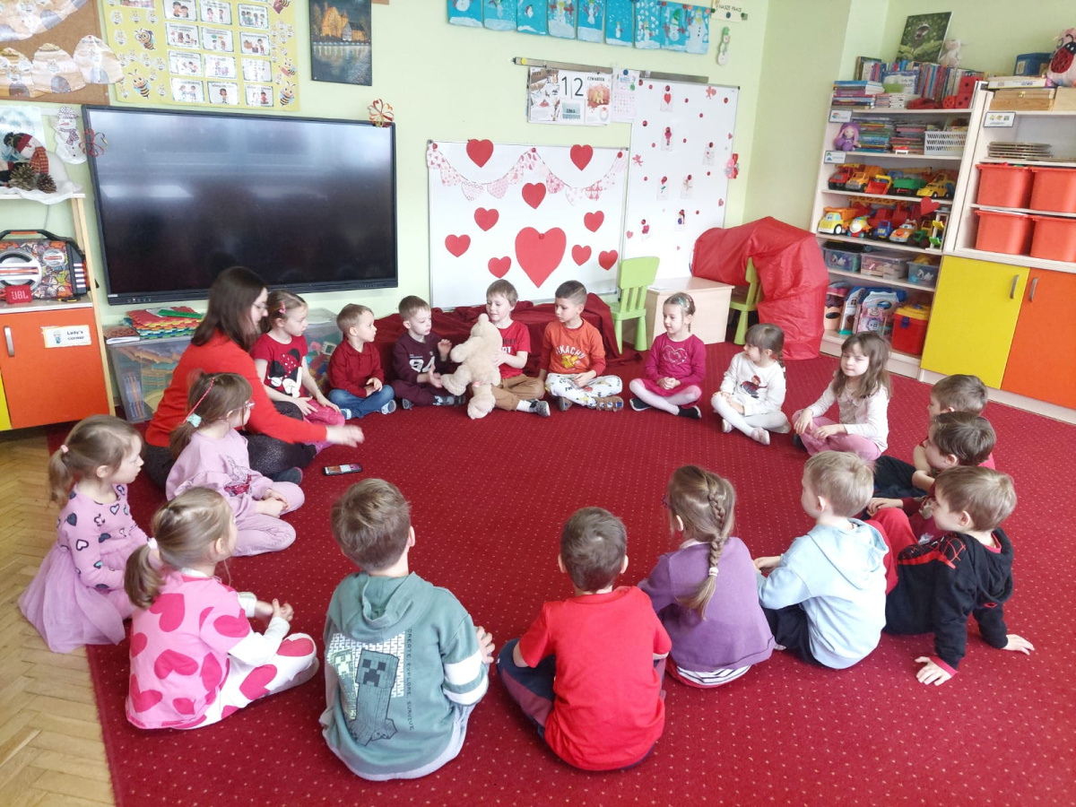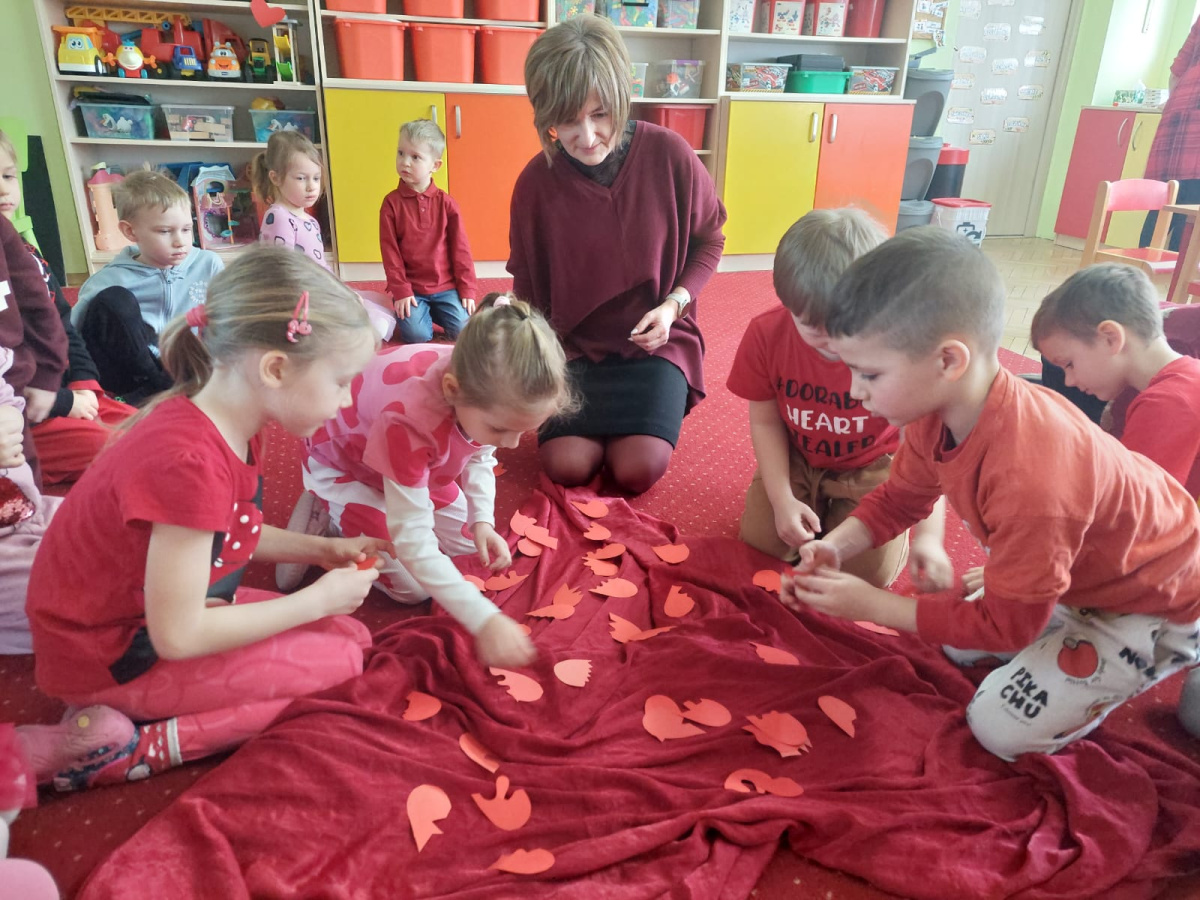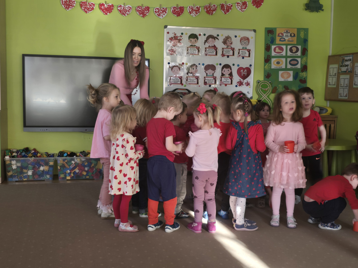 W poniedziałek 16 lutego w naszym przedszkolu świętowaliśmy Walentynki. Tego dnia wszystkie dzieci przyszły ubrane w czerwone i różowe elementy stroju, aby podkreślić wyjątkowy, radosny charakter święta. Już od rana w salach panowała wyjątkowa atmosfera – były one pięknie przystrojone serduszkami, balonami oraz kolorowymi dekoracjami.