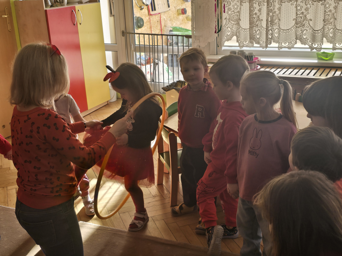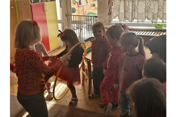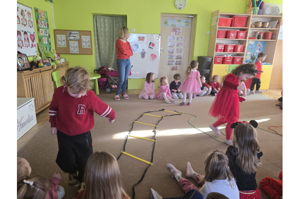 Dla przedszkolaków przygotowano wiele atrakcji. Odbyły się wesołe gry i zabawy ruchowe, konkursy oraz wspólne tańce przy muzyce. Dzieci brały udział w zabawach integracyjnych, które sprzyjały okazywaniu sympatii i życzliwości kolegom oraz koleżankom.