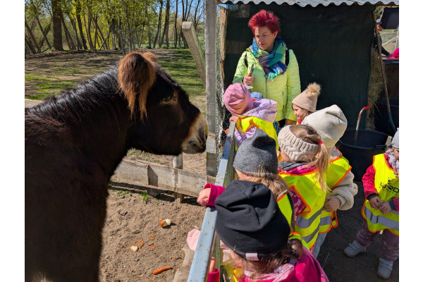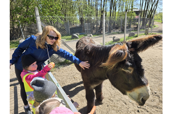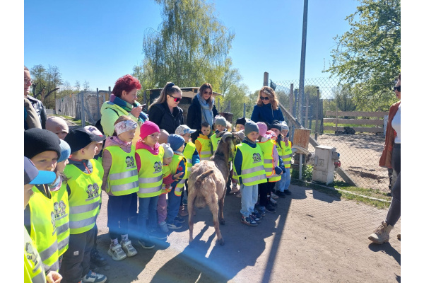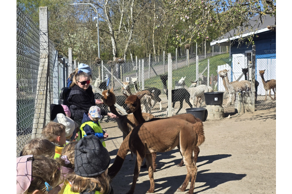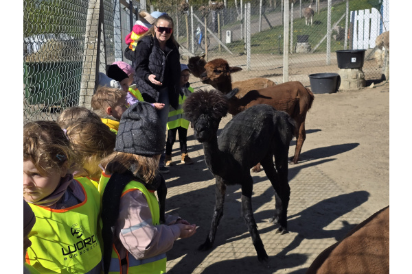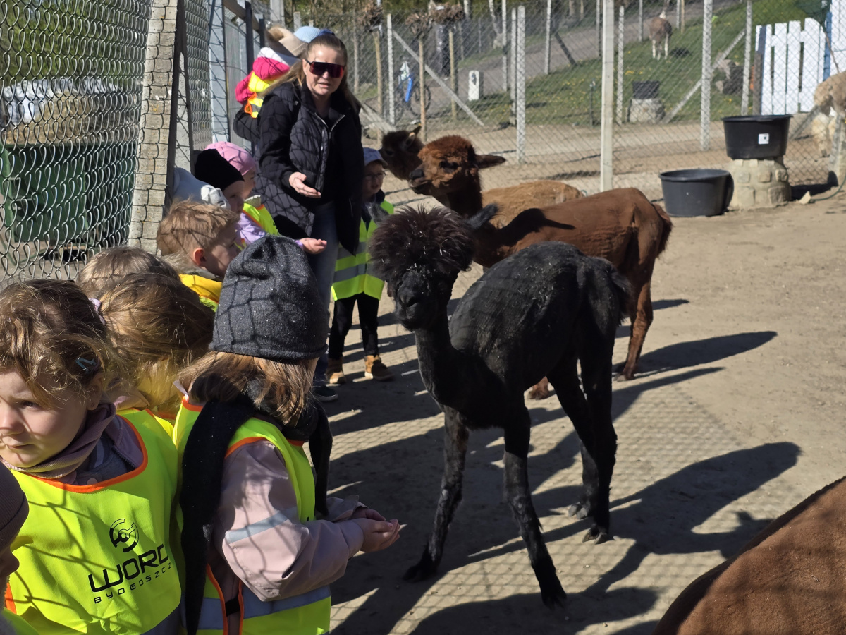 Dzisiaj pojechaliśmy autokarem na naszą pierwszą autokarową wycieczkę. Wycieczka do Krainy Dolnej Wisły była niezwykle ciekawym i przyjemnym doświadczeniem. To malownicze miejsce, pełne zwierząt i pięknej przyrody, pozwoliło nam na chwilę oderwać się od codzienności i poczuć prawdziwą więź z naturą. Podczas pobytu mieliśmy okazję poznać wiele różnych zwierząt takich jak: alpaki, owce walliserskie, osły Poitou, kozy anglonubijskie. Widzieliśmy też białego kangura Walabia-Bennetta. Pierwszy raz zobaczylismy zwierzę o nazwie mara patagońska. Oprócz tego widzieliśmy kozy, papugi, kury i koguty, pawie oraz emu. Największą atrakcją były alpaki, które chętnie jadły nam z ręki, co sprawiło nam dużo radości. Dla kóz przygotowaliśmy „szwedzki stół”, dzięki czemu mogliśmy je obserwować z bliska i zobaczyć ich zwyczaje. Na własnej skórze przekonaliśmy się również, co oznacza powiedzenie „uparty jak osioł”. Cała wycieczka była nie tylko świetną zabawą, ale też wartościową lekcją o zwierzętach i przyrodzie.