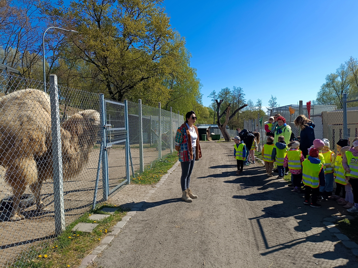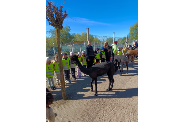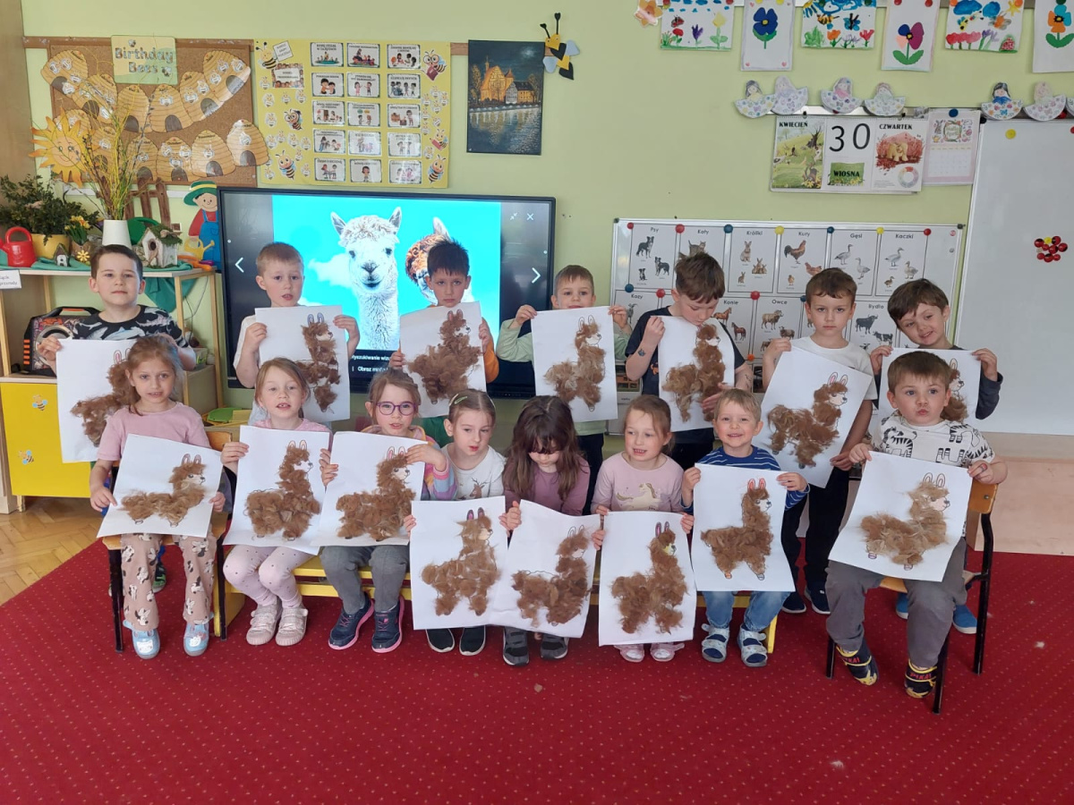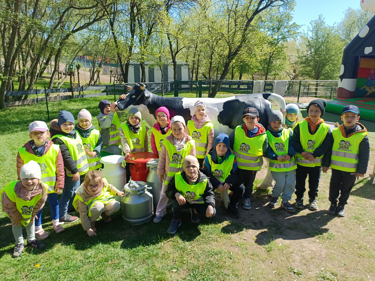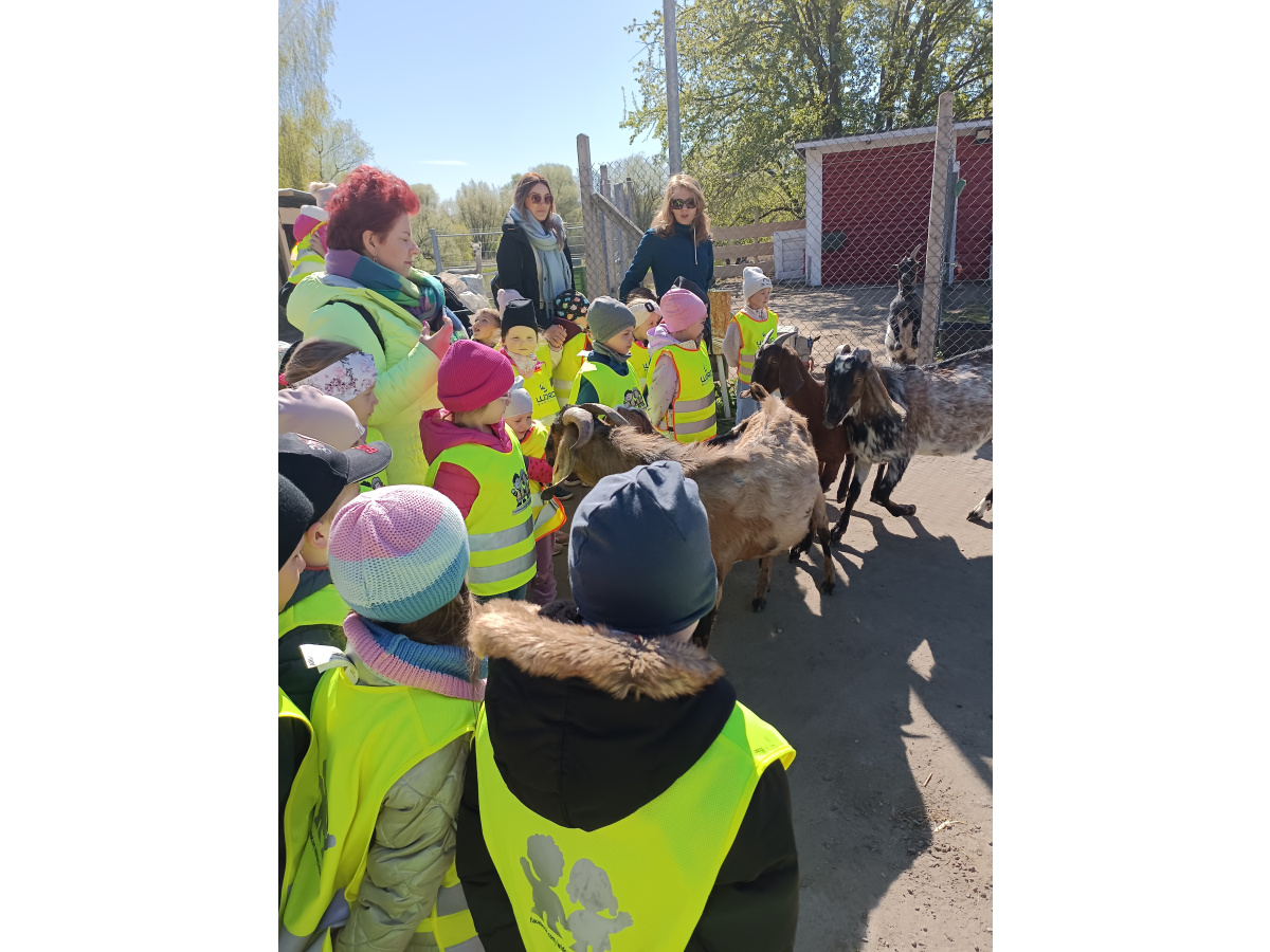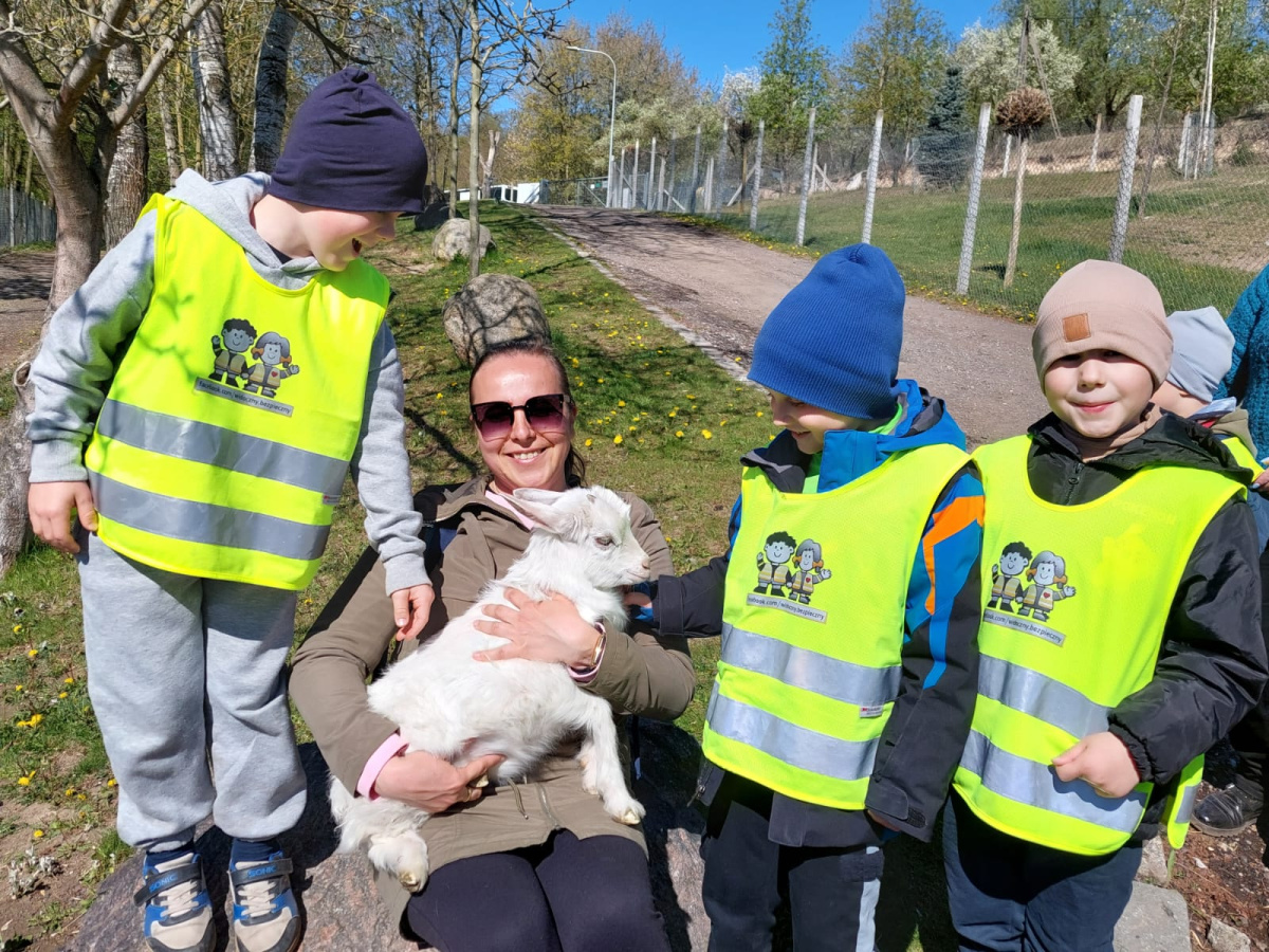 Odwiedziliśmy Krainę Dolnej Wisły - bardzo piękne miejsce, pełne zwierząt i cudnej przyrody! Wszystkim nam się bardzo podobało, a miejsce było przepiękne, szczególnie wiosną - kiedy wszystko kwitnie, w zagrodach są małe, dopiero co urodzone zwierzątka! Podczas pobytu mieliśmy okazję poznać wiele różnych zwierząt takich jak: alpaki, owce walliserskie, osły Poitou, kozy anglonubijskie. Widzieliśmy też białego kangura Walabia-Bennetta. Pierwszy raz zobaczylismy zwierzę o nazwie mara patagońska. Oprócz tego widzieliśmy kozy, papugi, kury i koguty, pawie oraz emu. Największą atrakcją były alpaki, które chętnie jadły nam z ręki, co sprawiło nam dużo radości. Dla kóz przygotowaliśmy „szwedzki stół”, dzięki czemu mogliśmy je obserwować z bliska i zobaczyć ich zwyczaje oraz poznać ich ulubione menu. Na własnej skórze przekonaliśmy się również, co oznacza powiedzenie „uparty jak osioł”. Cała wycieczka była nie tylko świetną zabawą, ale też wartościową lekcją o zwierzętach i przyrodzie! Malowaliśmy też gipsowe figurki zwierząt, a na koniec mieliśmy piknik w altance oraz zabawy na dmuchańcach. Było suuuuuper!