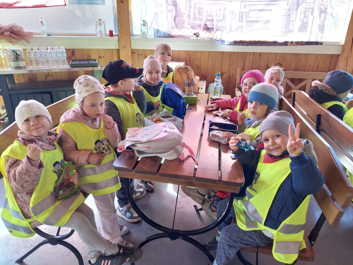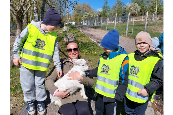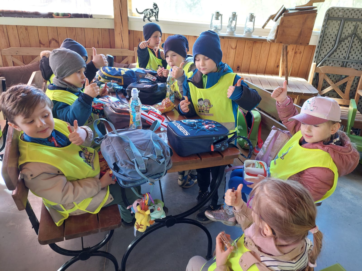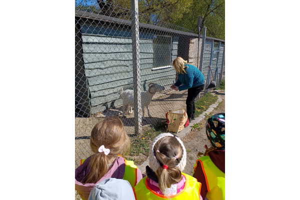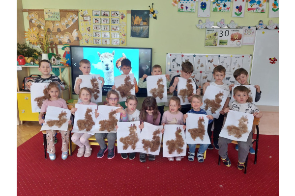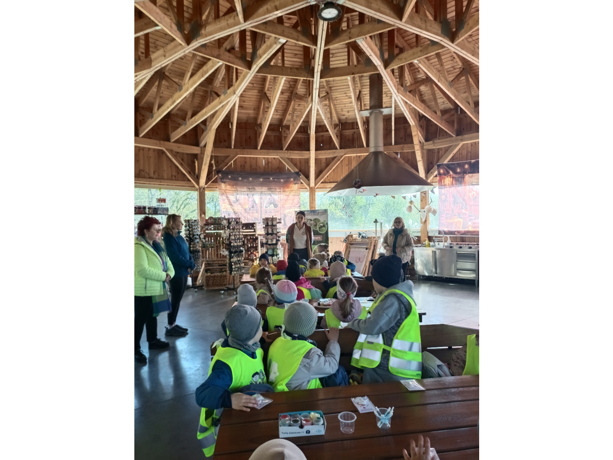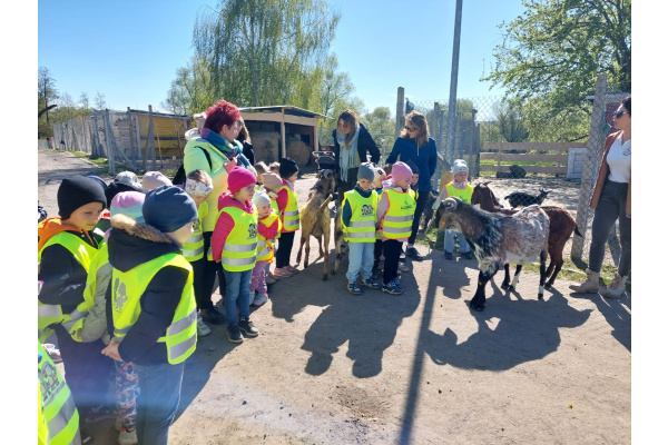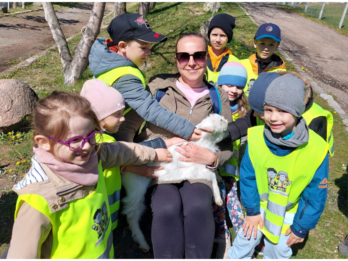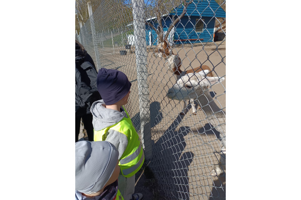 Odwiedziliśmy Krainę Dolnej Wisły - bardzo piękne miejsce, pełne zwierząt i cudnej przyrody! Wszystkim nam się bardzo podobało, a miejsce było przepiękne, szczególnie wiosną - kiedy wszystko kwitnie, w zagrodach są małe, dopiero co urodzone zwierzątka! Podczas pobytu mieliśmy okazję poznać wiele różnych zwierząt takich jak: alpaki, owce walliserskie, osły Poitou, kozy anglonubijskie. Widzieliśmy też białego kangura Walabia-Bennetta. Pierwszy raz zobaczylismy zwierzę o nazwie mara patagońska. Oprócz tego widzieliśmy kozy, papugi, kury i koguty, pawie oraz emu. Największą atrakcją były alpaki, które chętnie jadły nam z ręki, co sprawiło nam dużo radości. Dla kóz przygotowaliśmy „szwedzki stół”, dzięki czemu mogliśmy je obserwować z bliska i zobaczyć ich zwyczaje oraz poznać ich ulubione menu. Na własnej skórze przekonaliśmy się również, co oznacza powiedzenie „uparty jak osioł”. Cała wycieczka była nie tylko świetną zabawą, ale też wartościową lekcją o zwierzętach i przyrodzie! Malowaliśmy też gipsowe figurki zwierząt, a na koniec mieliśmy piknik w altance oraz zabawy na dmuchańcach. Było suuuuuper!