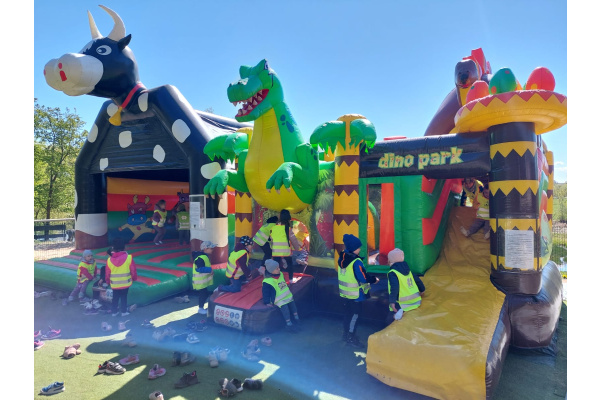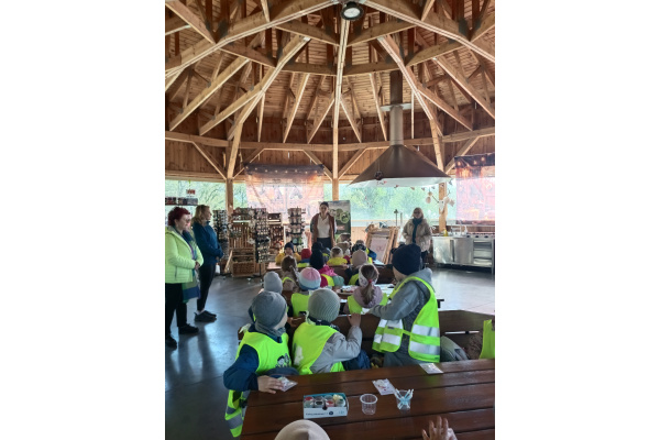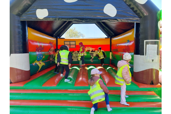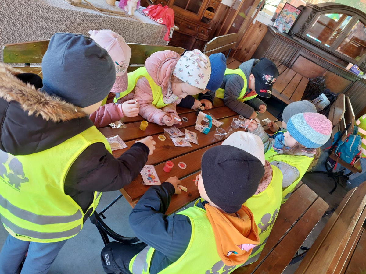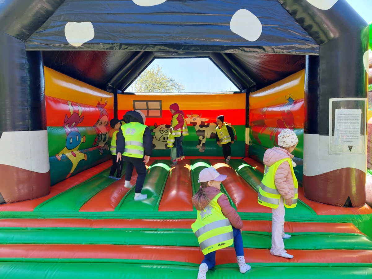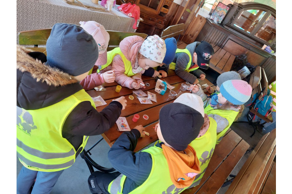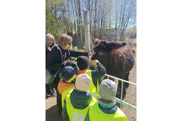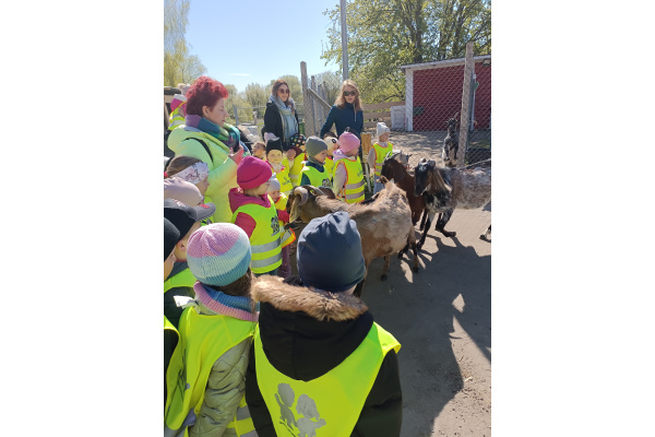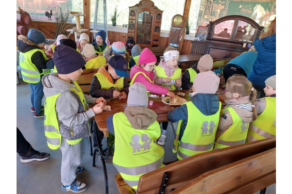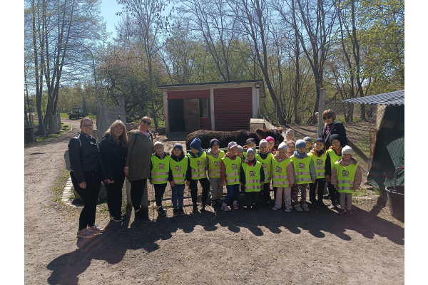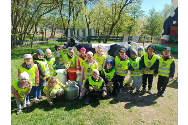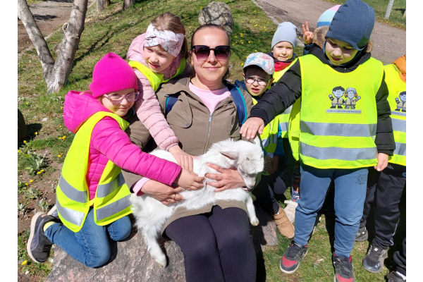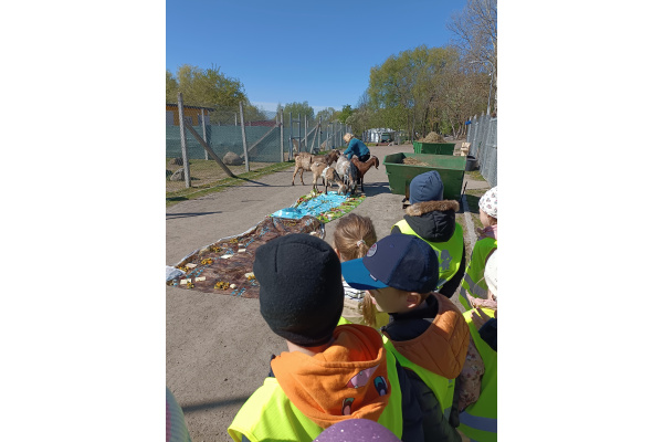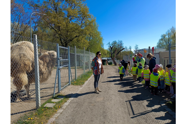 Odwiedziliśmy Krainę Dolnej Wisły - bardzo piękne miejsce, pełne zwierząt i cudnej przyrody! Wszystkim nam się bardzo podobało, a miejsce było przepiękne, szczególnie wiosną - kiedy wszystko kwitnie, w zagrodach są małe, dopiero co urodzone zwierzątka! Podczas pobytu mieliśmy okazję poznać wiele różnych zwierząt takich jak: alpaki, owce walliserskie, osły Poitou, kozy anglonubijskie. Widzieliśmy też białego kangura Walabia-Bennetta. Pierwszy raz zobaczylismy zwierzę o nazwie mara patagońska. Oprócz tego widzieliśmy kozy, papugi, kury i koguty, pawie oraz emu. Największą atrakcją były alpaki, które chętnie jadły nam z ręki, co sprawiło nam dużo radości. Dla kóz przygotowaliśmy „szwedzki stół”, dzięki czemu mogliśmy je obserwować z bliska i zobaczyć ich zwyczaje oraz poznać ich ulubione menu. Na własnej skórze przekonaliśmy się również, co oznacza powiedzenie „uparty jak osioł”. Cała wycieczka była nie tylko świetną zabawą, ale też wartościową lekcją o zwierzętach i przyrodzie! Malowaliśmy też gipsowe figurki zwierząt, a na koniec mieliśmy piknik w altance oraz zabawy na dmuchańcach. Było suuuuuper!