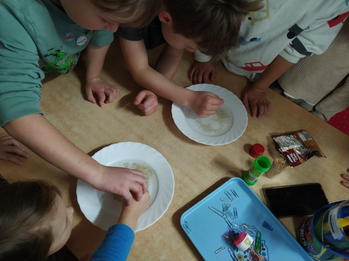 - aktywnie uczestniczy w różnorodnych zabawach, eksperymentach i doświadczeniach (ogląda, szuka, obserwuje, porównuje, bada, eksperymentuje)