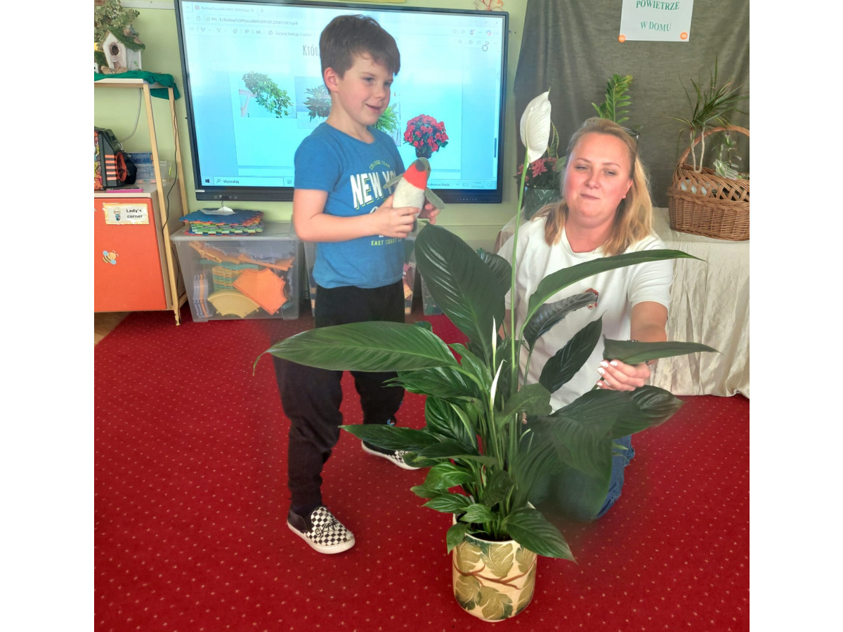 dwutlenek węgla. Poznaliśmy też żywe okazy kwiatów - bluszcz, sansewierę, skrzydłokwiat,