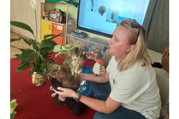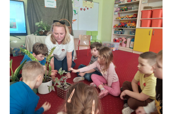 mamę Lewka. Pani Renata przybliżyła dzieciom temat ,,magicznych” roślin doniczkowych, które