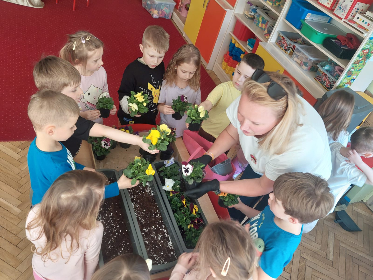 z dziećmi przyniesione przepiękne bratki !
